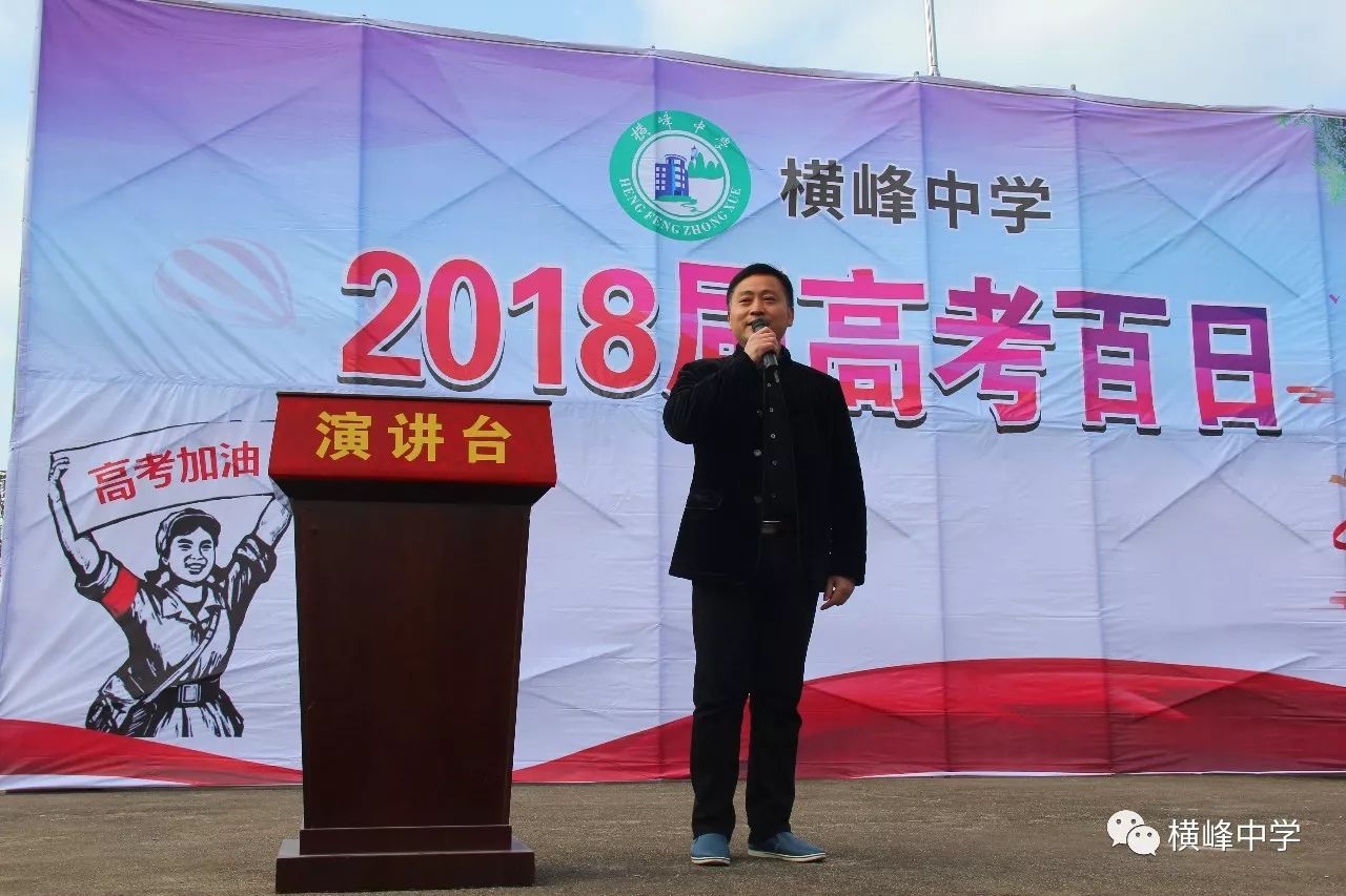 高考是一次知识、能力、心理素质等多方面的综合测试,100天时间足以让我们创造奇迹!“百日磨励酬壮志,不负江东父老情”在横峰中学这个人才辈出的地方,大家要用青春写下诗行,要让梦想张开翅膀! 为了父母的养育之恩,为了老师的培养之情,用顽强地拼搏打造理想,用辛勤的汗水浇灌希望!所以,在最后这100天,我真诚地希望我们高三的每一位同学,要有“拂去庞杂而追逐根本,直抵核心部位”的心态,彻底抛掉一切杂乱思绪,科学、合理地安排好自己的复习和休息的计划,坚定“天生我才必有用”、“尽心努力我无悔”的信念,心静如水,拼博到底! 三年求学,无数次看到上学、放学时间,总有一个人早早地在校门口迎接、送别同学们,总有一个人在不停地指导、鼓励着大家,在这一百天为梦想打拼、奔赴成功道路上的日子里,他也一直是我们的坚强后盾和有力保障! 此刻,高三学子即将奔赴决战高考的最前线,苏万林校长走上主席台,带领全体高一、高二学子为高三的学长、学姐加油,随后,他发表热情洋溢的讲话,带来了恳切的建议和殷切的希望。 06