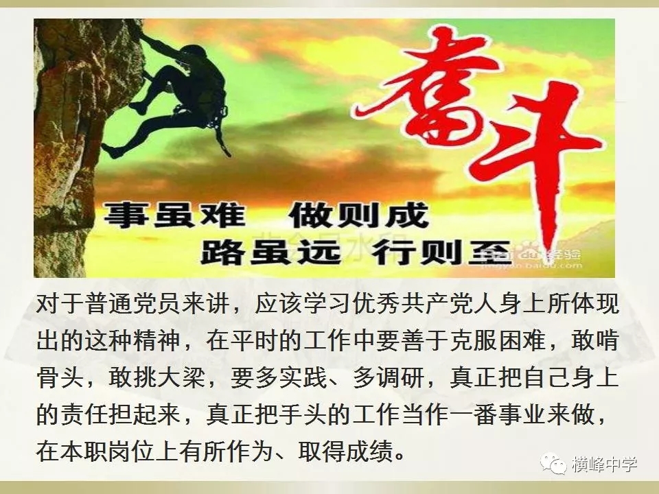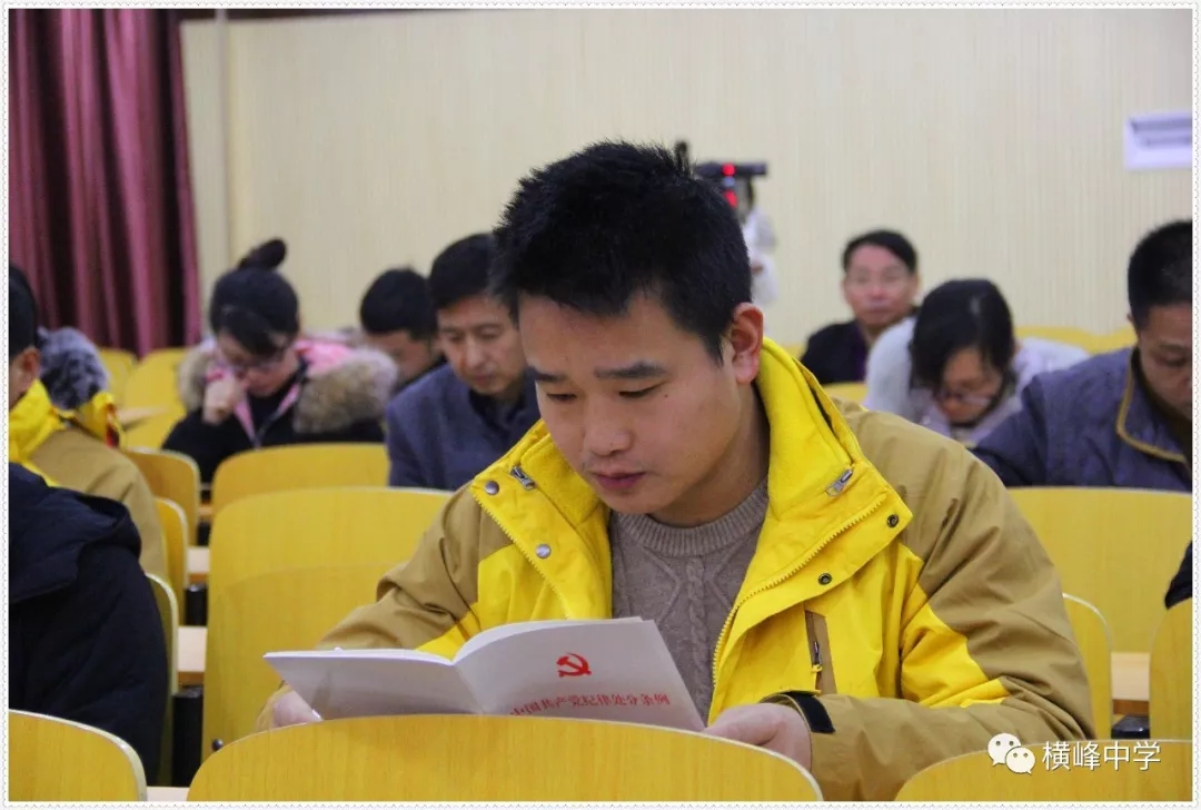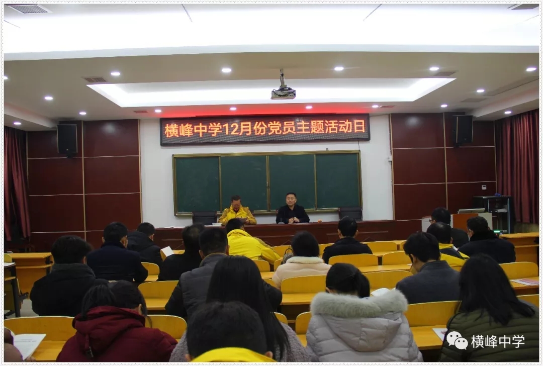 14日下午4点,横峰中学党总支举行主题为“学条例 讲党课 向先进共产党员看齐”的12月份党员主题活动日活动。会议伊始,横峰中学教工党支部书记李章新为全体党员领学中国共产党支部工作条例(试行)》《关于六起形式主义、官僚主义典型案例的通知》等文件,他号召全体党员教师学习以黄群、宋月才、姜开斌同志为代表的抗灾抢险英雄群体和王继才同志的先进事迹。