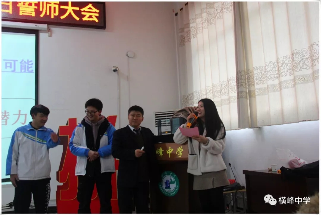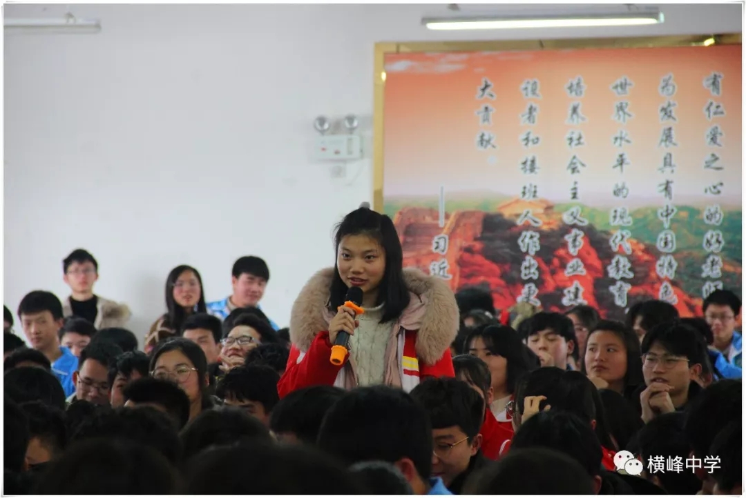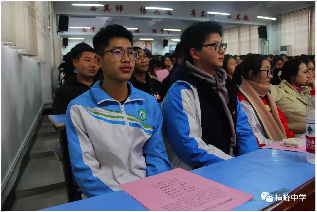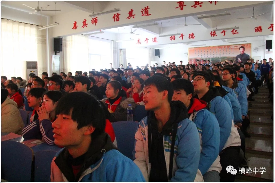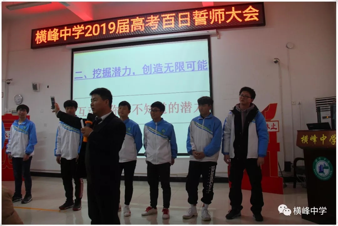 横看成岭侧成峰 , 横峰中学再起峰 。 数千战友齐聚会 , 此生不奋待何生。 ——王健 逐梦高考,无问西东。 砥砺争先,不负青春。 一九高考,谁与争锋。 英雄少年,唯我横中。 冲刺百天,着力巅峰。 决战百天,我必成功! ——横峰中学百日冲刺誓词 历经十几年寒窗苦读的高三学子们已经走完了四千多个日日夜夜,现在,至关紧要的100天冲刺就在眼前。3月1日下午,我校高三师生集结在校艺术楼阶梯教室,共同见证高考倒计时100天。