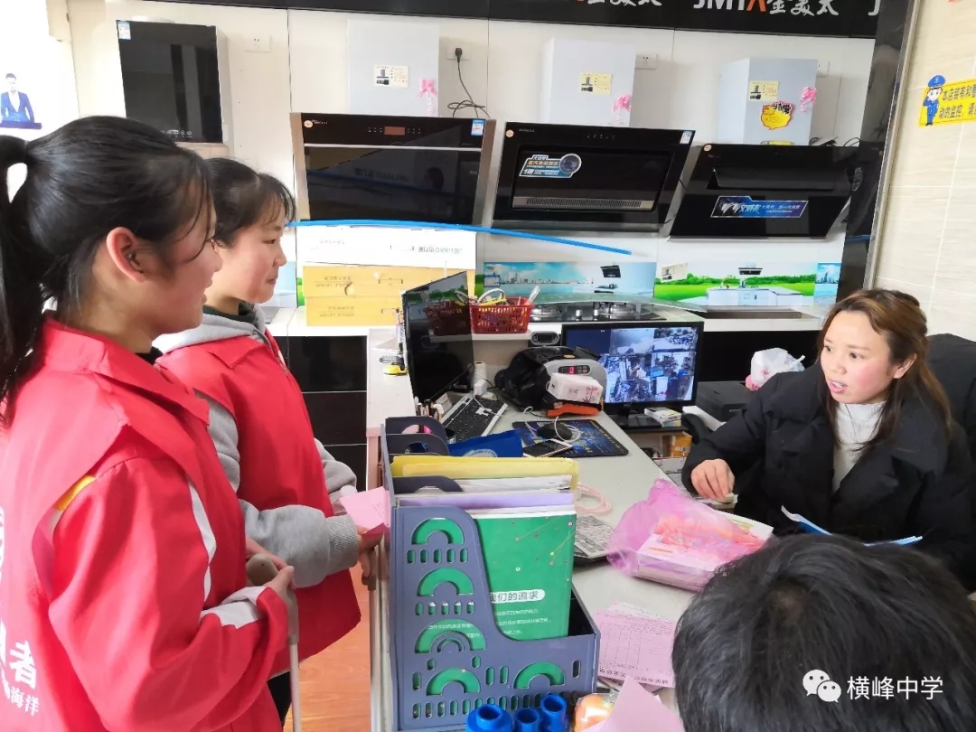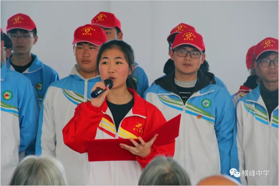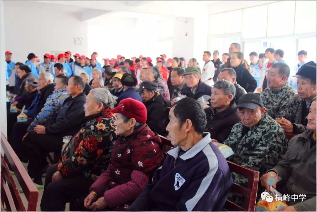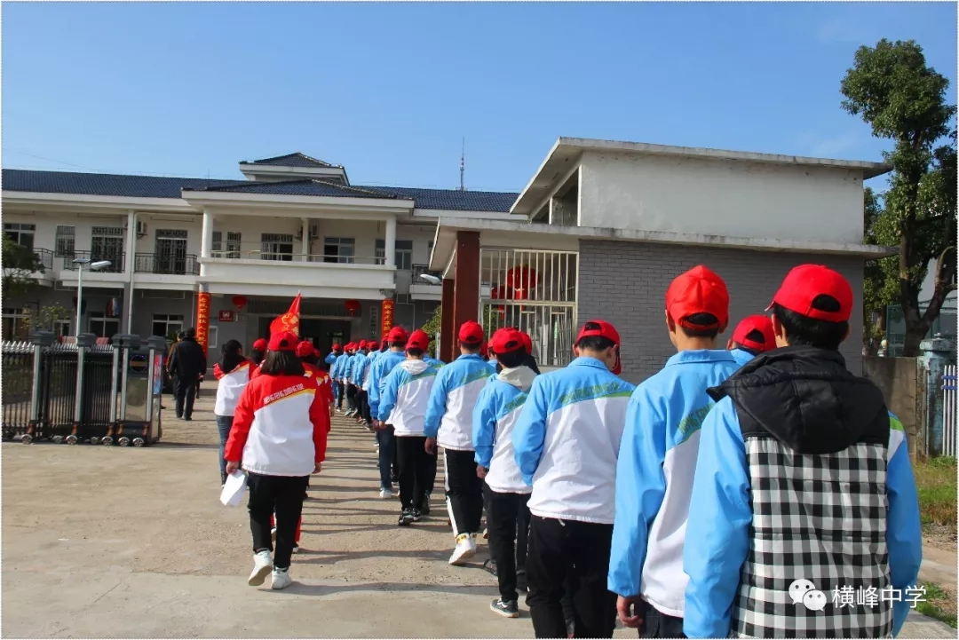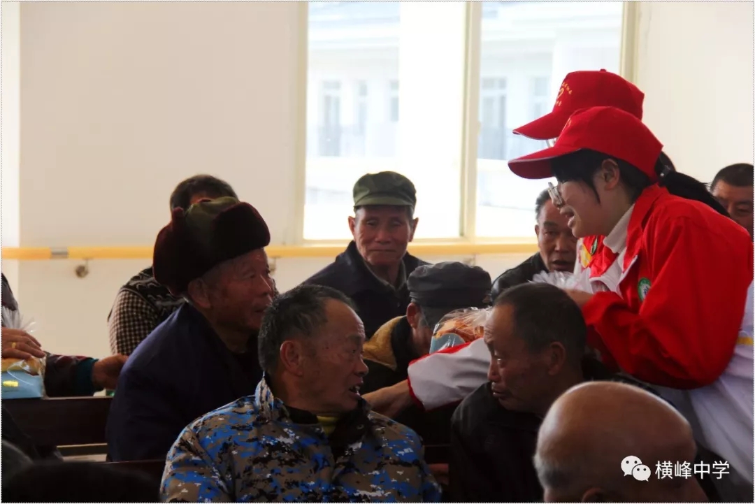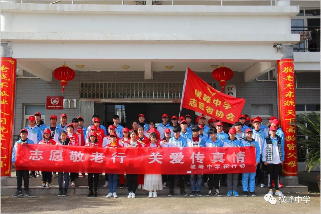 横峰中学党总支书记、校长苏万林在校门口为参加志愿活动的同学们送上真诚的祝福。 01 志愿敬老行 关爱传真情