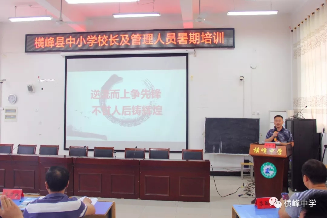“用精致的管理、精美的环境打造精品课堂、培育精才;通过正志、正心、正道、正气行为谋求师生健康发展,这就是我校的文化核心。”7月16日,横峰县中小学校长及管理人员暑期培训的最后一天,我校党总支书记、校长苏万林应邀向参会的教体局党委书记、局长陈填心,全县各中小学校长、管理人员汇报横峰中学研训工作。