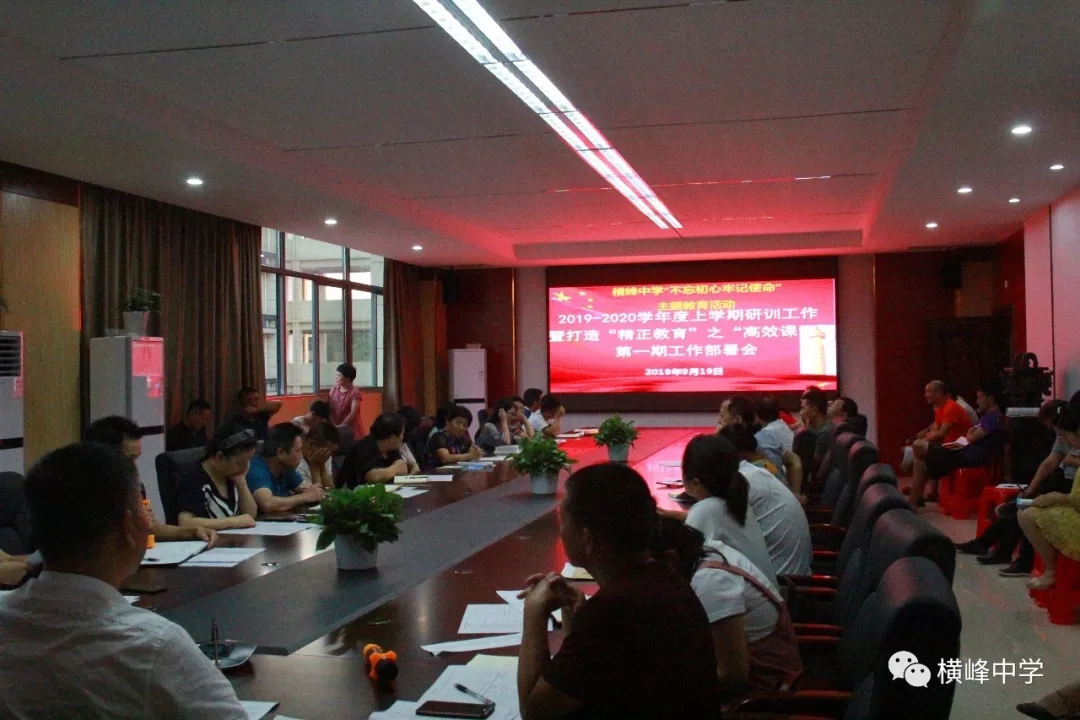“学校教学质量是本质、是核心、生命线。”新学期,新起点,为了确保学校各项教学工作的顺利开展,使学校的教学工作朝着精细化、规范化发展,进一步突出教研组长、备课组长在教学教研中的引领作用。9月19日下午,我校在办公楼会议室召开“2019-2020学年度上学期研训工作暨打造‘精正教育’之‘高效课堂’第一期工作部署会”,横峰中学党总支书记、校长苏万林,副校长洪广罗,校务委员侯弋峰及全体教研组长、备课组长、各年级组教学管理负责人参加会议,研训处副主任兰星伏老师主持会议。
