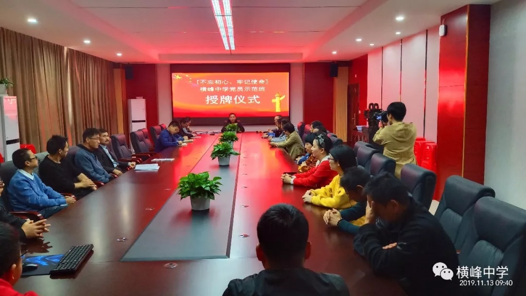 “一个支部,就是一个堡垒;一个党员就是一面旗帜”,学校“精正”楼里的话语时刻勉励横峰中学党员教师及全校职工努力工作,锐意进取,牢记使命。11月13日上午,我校举行新学年“党员示范班”授牌仪式。正在学校视察“不忘初心、牢记使命”工作开展情况的县委第三指导组一行与我校党委书记、校长苏万林等校领导共同为新一期“党员示范班”授牌。