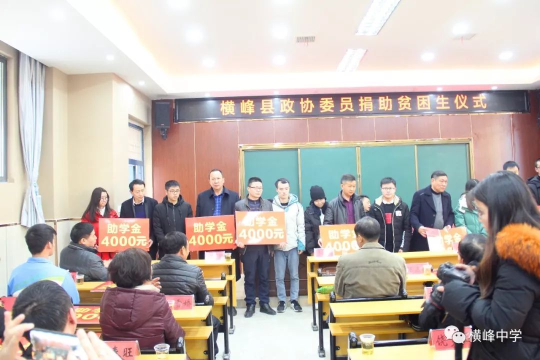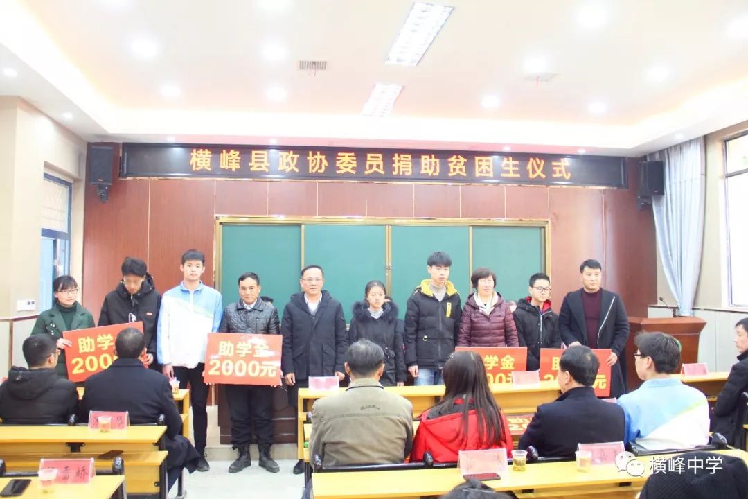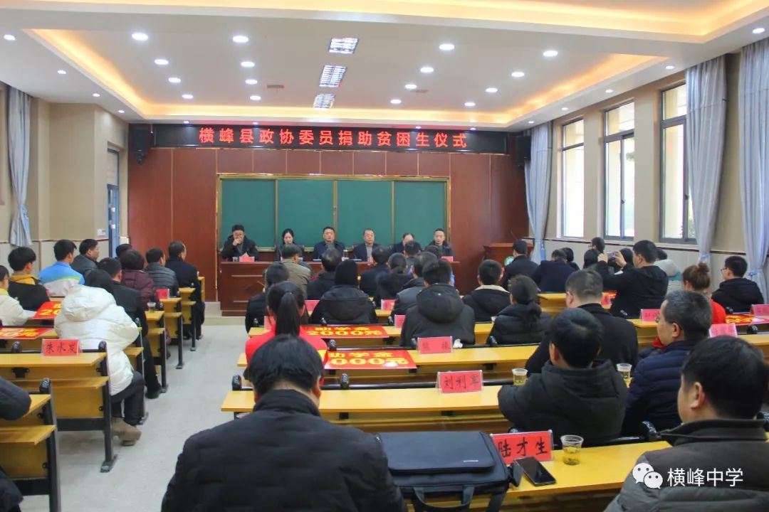 爱心凝聚人心、关怀温暖社会。元月20日下午,天空放晴、阳光明媚,浓浓爱心在横峰中学新校区多功能报告厅涌动,横峰县政协委员捐助贫困学生仪式在此隆重举行。