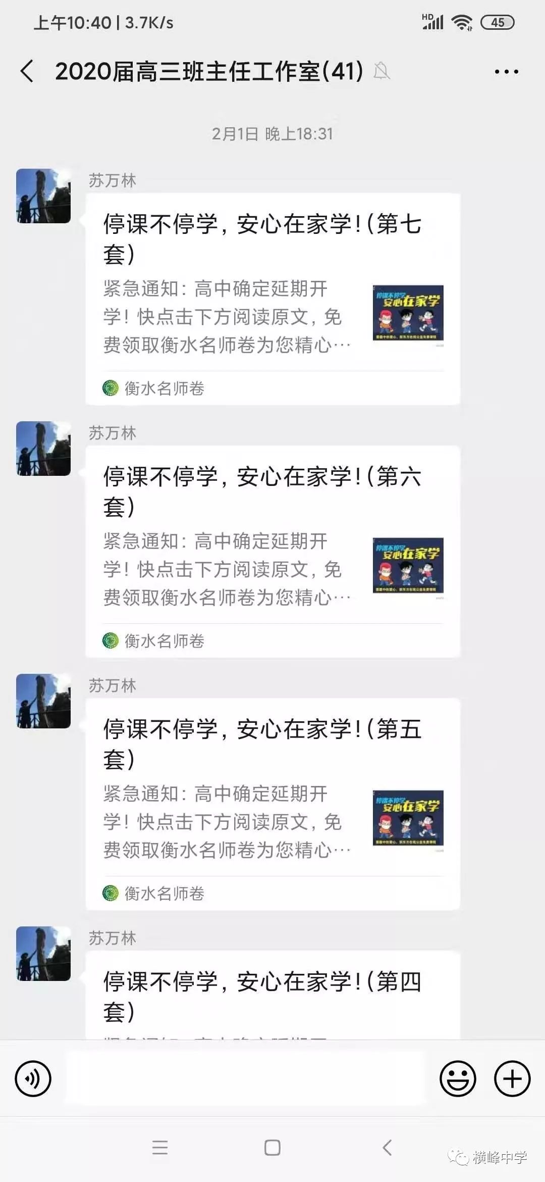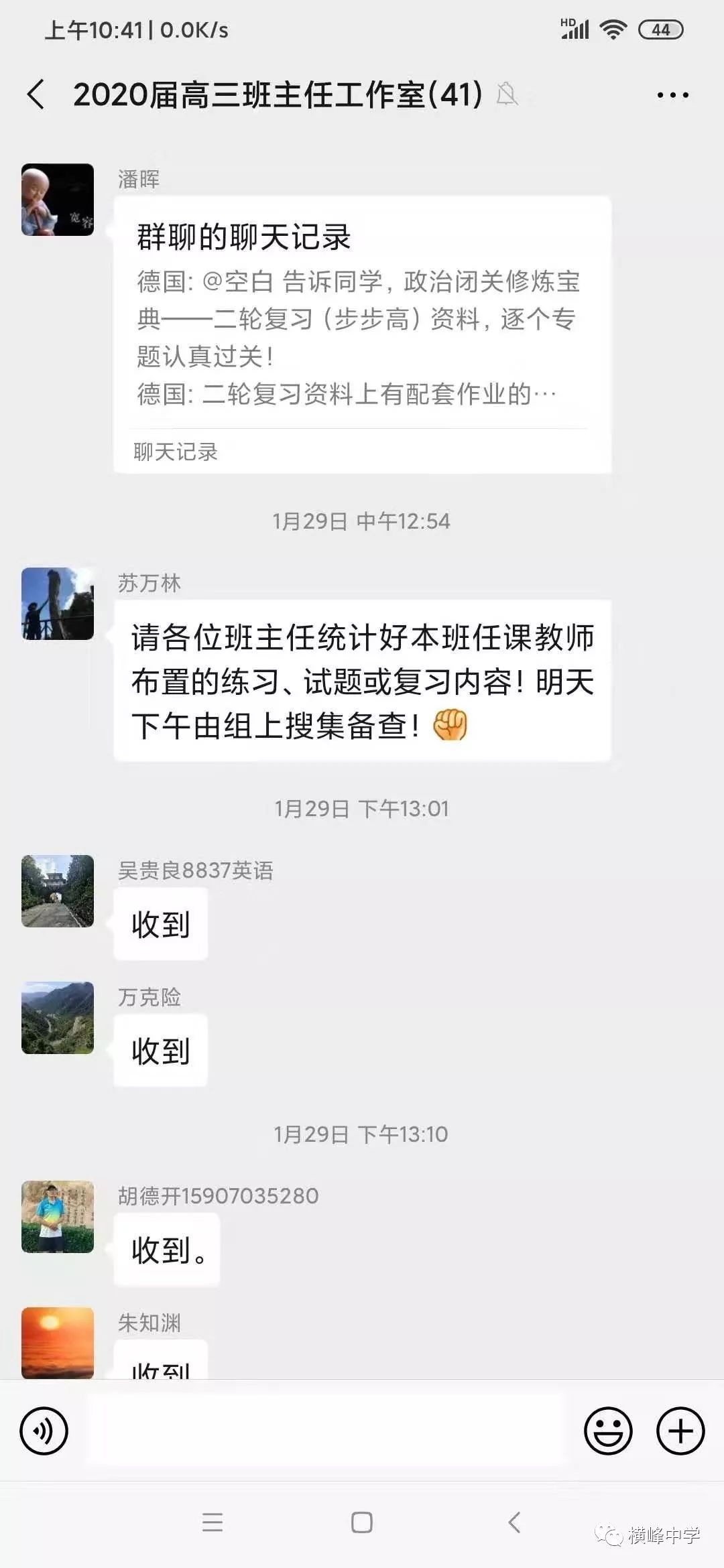我们用责任坚守,网络讲台就是战场,授课就是战斗!自疫情发生以来,我校部署“停课不停学”各项工作事宜,针对特殊情况更改教学方案,课任教师停课不停研,线上讨论备课、作业布置检查等工作;班主任与家长、学生保持密切联系,及时提供各种教学资源,统计各类上报信息。