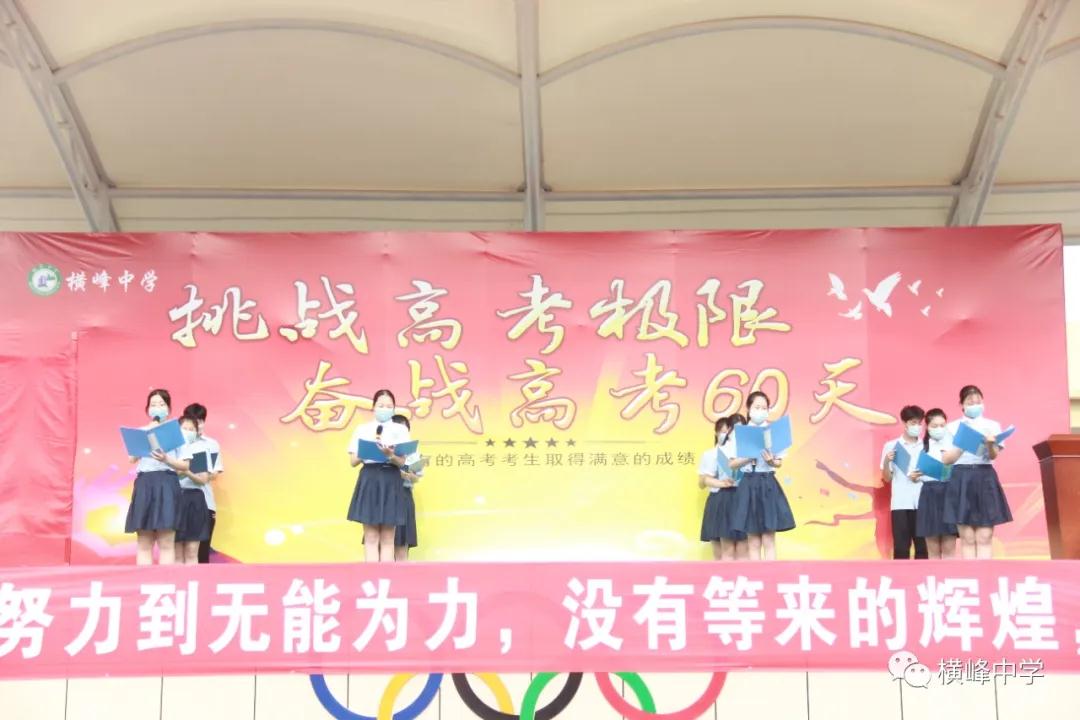 年轻的脸庞写满无言的畅想,宽阔的胸膛满怀崭新的希望;传承母校的历史荣光,再创横中高考新的辉煌!寒假期间,一场突如其来的疫情险些打乱我校高三师生备战高考的节奏,学校迅速行动,整合各方资源,保证线上教学质量,扎实复习,平稳度过了史上最漫长的寒假。 5月6日上午,抱着决战60天,让青春无悔的决心,抱着决胜七月,为人生添彩的信念,我校党委书记、校长苏万林携全体教师、全体高三学生在校运动场有序集结,共同举行“挑战高考极限,奋战高考60天”动员大会,为高三师生鼓劲加油。