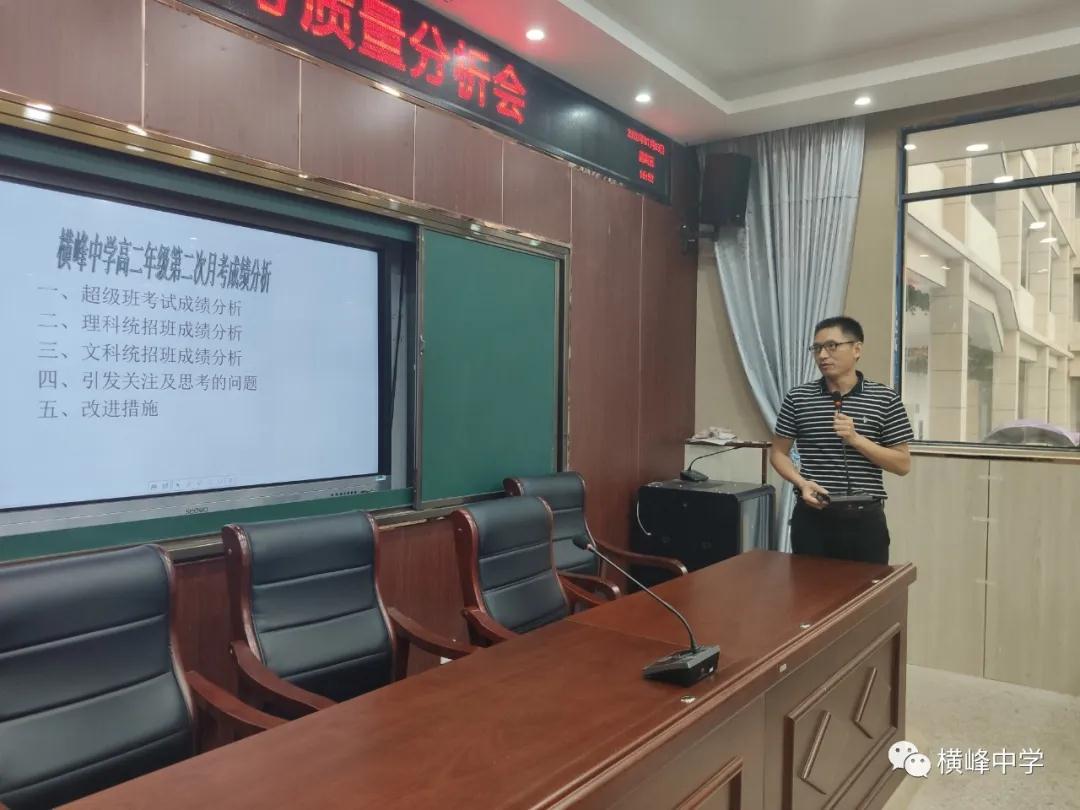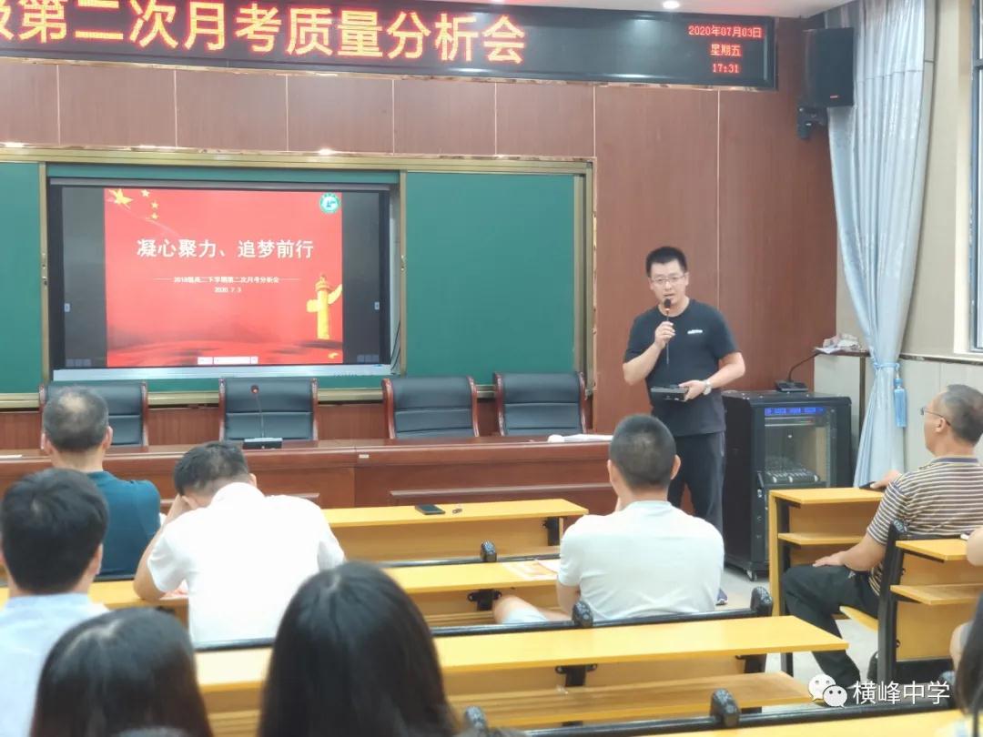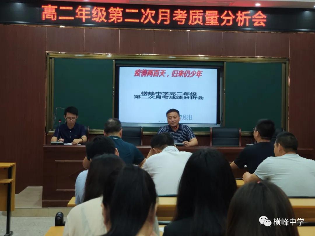 每次考后的及时总结分析,为的是提高教学质量,对后期教学形成导向作用。7月3日下午,我校高二年级召开第二次月考质量分析会。横峰中学党委书记、校长苏万林出席会议并讲话。研训处主任简伟伟主持会议。