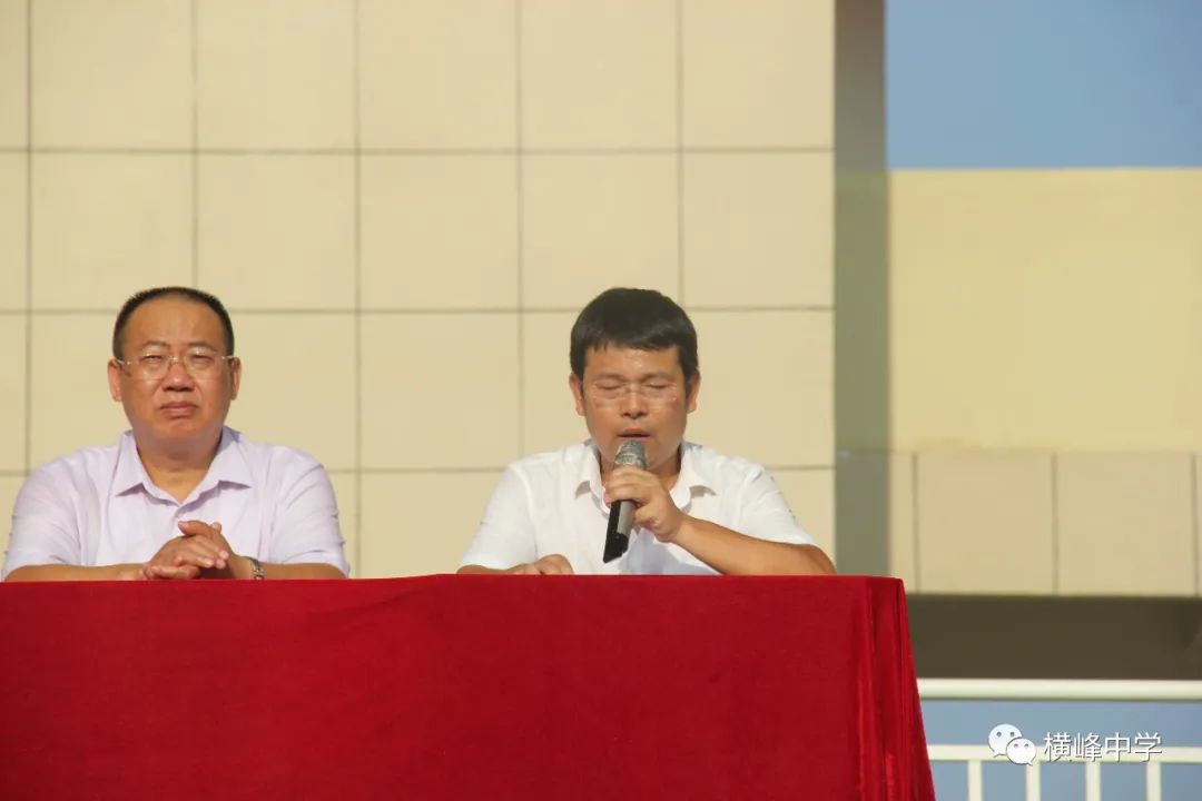 伴随着庄严雄壮的国歌和冉冉升起的五星红旗,开学典礼正式拉开序幕。田径场上红旗猎猎,全校师生近3800余人迎来新的征程。学校党委书记、校长苏万林携校级领导班子在主席台就座,横峰中学党委副书记、副校长黄爱民主持本次典礼。