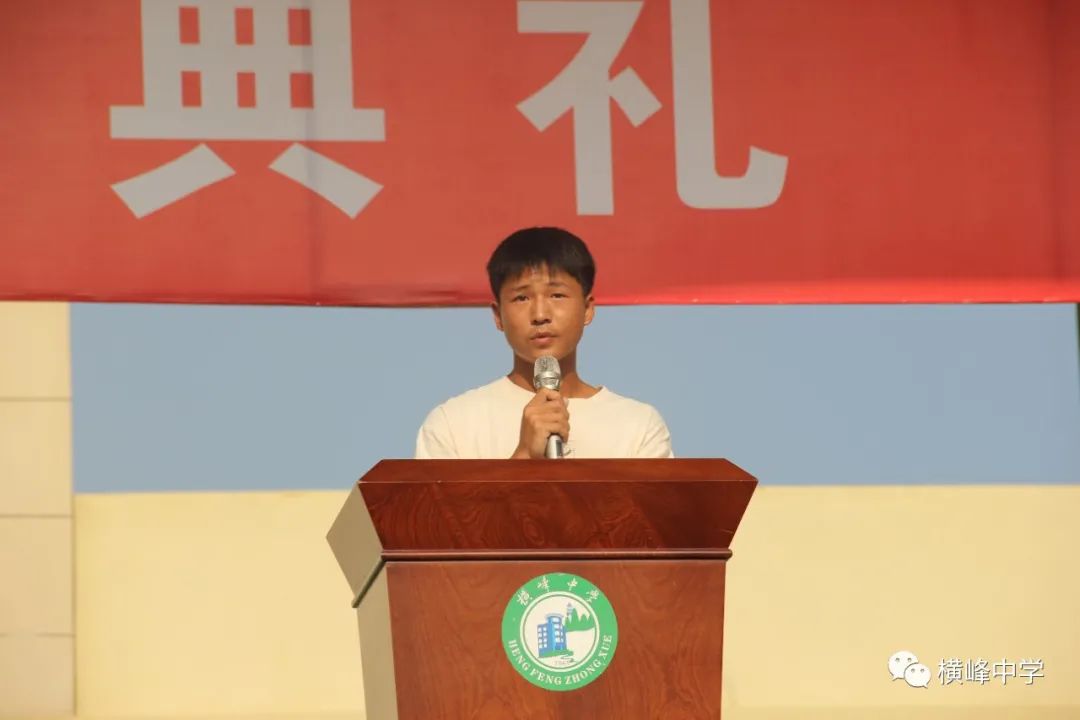 新高一超级班杨镇同学作为学生首先发言,立下“今日我以横中为荣,明天横中以我为傲”的铮铮誓言,表达全体学生对未来的期望。