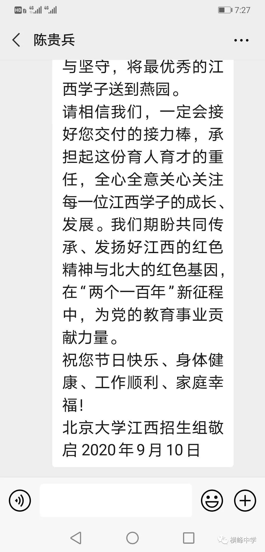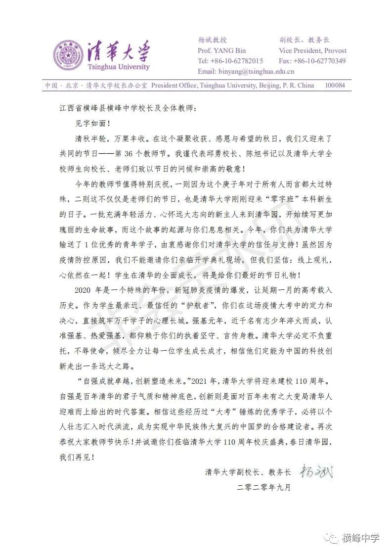 | 清华大学、北京大学向横峰中学教师致以节日的问候! | |||