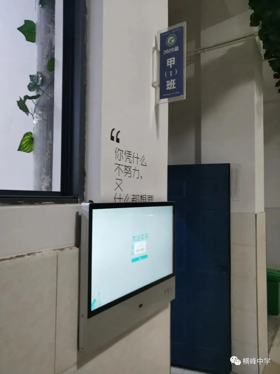 2020年11月,携手一德壹教公司,横峰中学的72个班级配备了智慧班牌。智慧班牌成功落地安装后,不仅为师生实质性地解决了走班制教学问题、为校园文化增加了多媒体展示平台,也为横峰中学的现代化教学管理带来了一个新的开篇。 02 基于智慧班牌,构建走班信息查询系统 选课走班后,学生与行政班之间的联系明显削弱,智慧班牌这个新兴的智慧校园多媒体信息平台成为了学生与行政班之间信息沟通的桥梁。 智慧班牌系统可以展示班级信息、教室课表、课程时段、出勤考核等情况。学生可通过人脸识别、校园卡查询本人课表、考勤、成绩等学业情况,进行课程签到、请假、查询个性化信息等。