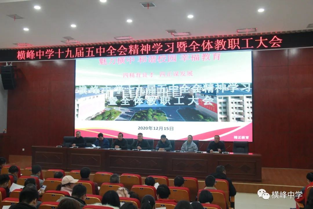 为深入学习十九届五中全会精神,总结我校五年来的发展状况并对未来提出新的发展目标。12月15日,横峰中学在“精正”楼四楼会议室召开十九届五中全会精神学习暨全体教职工大会。