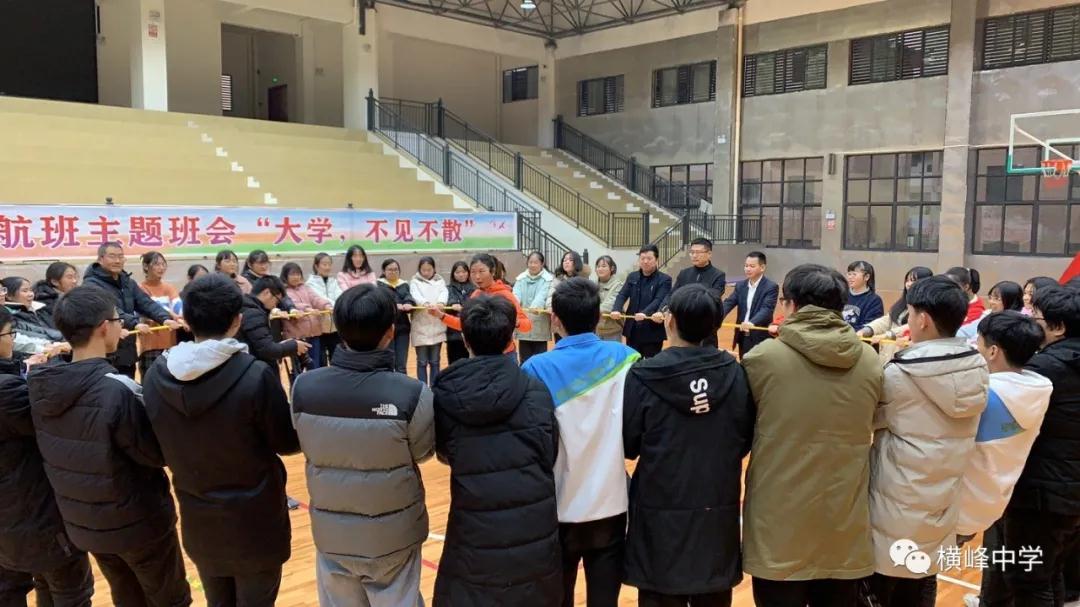 “旭航”,旭日起航,给即将走向成年、走向未来的学子送去温暖阳光。12月22-23日,横峰中学2018、2019级两个旭航班的同学分别参加了主题为“大学,不见不散”、“高考,不战不休”的旭航班主题班会。县委常委、副县长梅世丽与两个班级的学子共同参加了拓展活动并讲话。我校校务委员王千明,校心理咨询师潘黎静主持活动。图片