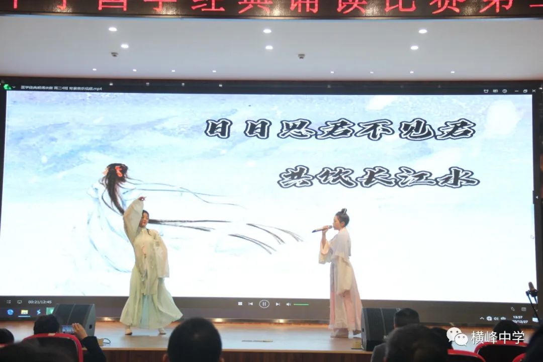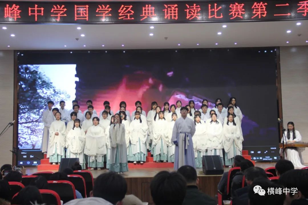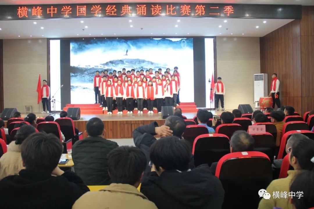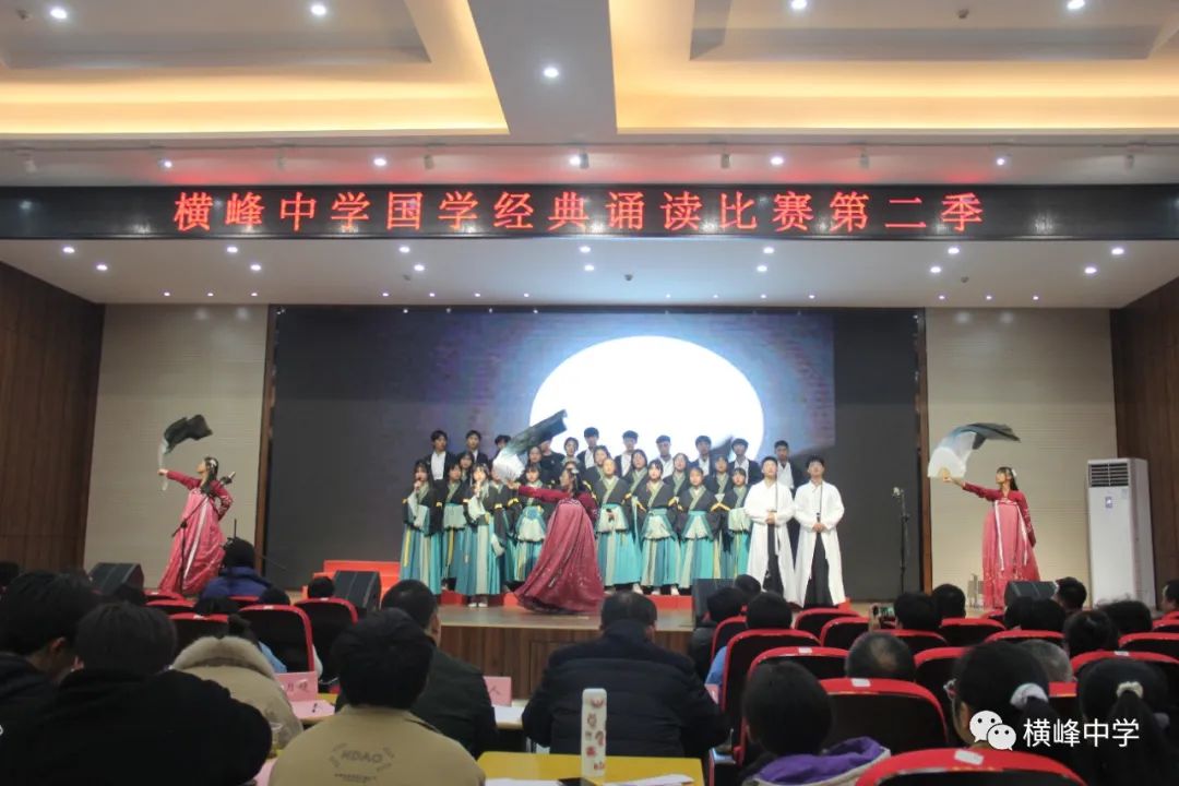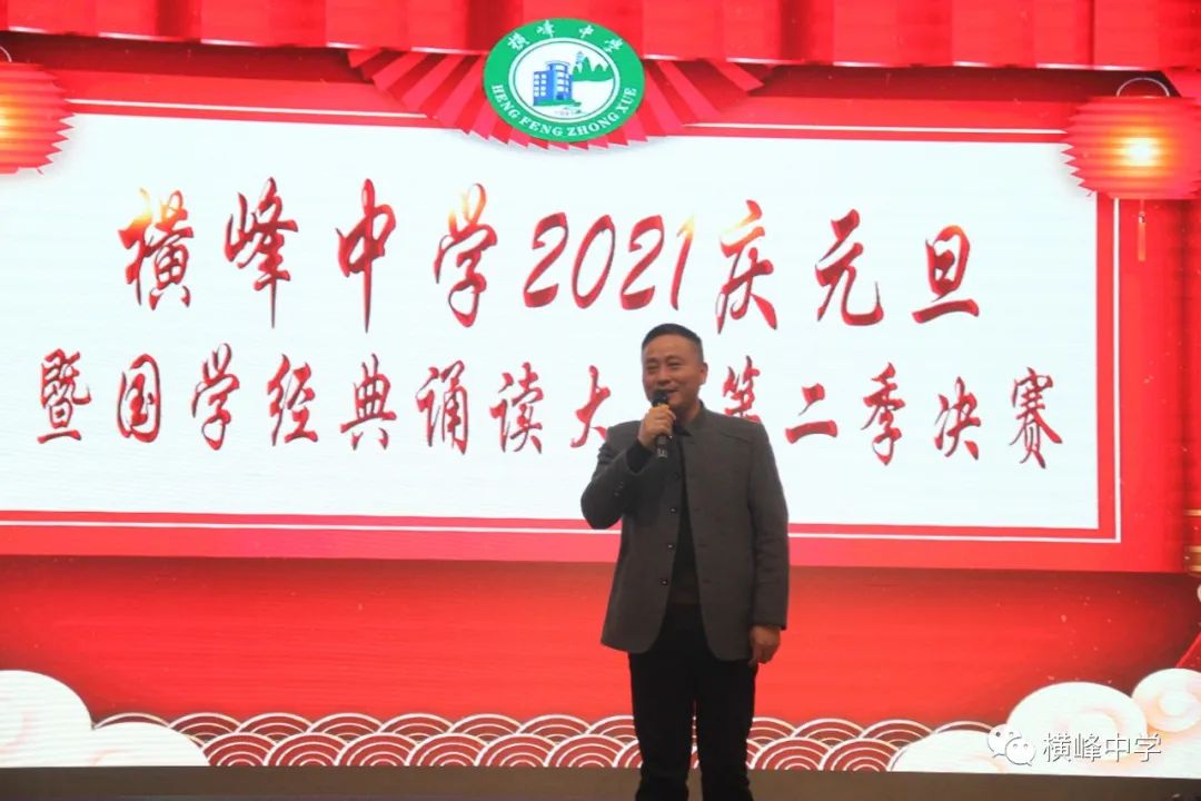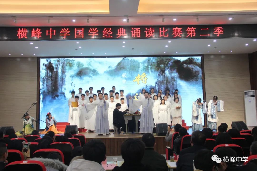 书卷多情似故人, 晨昏忧乐总相亲。 为了深入落实“立德树人”的根本任务,推进书香校园建设,弘扬中华优秀传统文化和美德。12月28日下午,横峰中学国学经典诵读大赛决赛在四楼报告厅隆重举行,从预赛中脱颖而出的12个班级展开了激烈的角逐,学校党委书记、校长苏万林携我校全体行政人员和语文教师观摩了这一活动。
