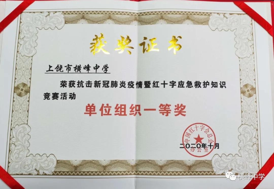横峰中学在2020年组织抗击新冠疫情暨红十字应急救护知识竞赛活动中荣获国家级单位组织一等奖!我校付维寒老师荣获最佳组织奖! |