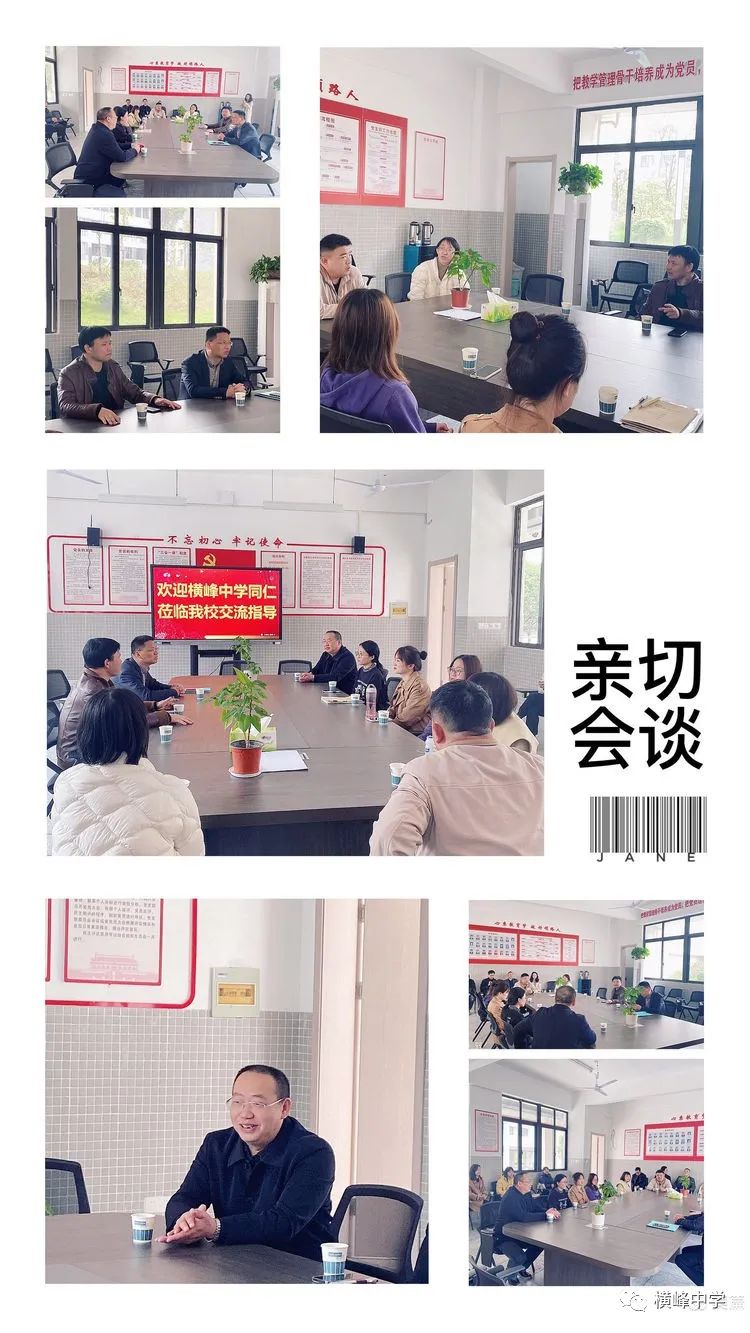 上饶一中新校区的凌忠红副校长、吴翔副校长、政治组教研组长袁学洲等领导和老师们与我们横中政治组一行展开了亲切的会谈。双方就政治学科教学情况,师生配比等话题进行了交流,推进了双方老师的了解,增进了大家的情感。