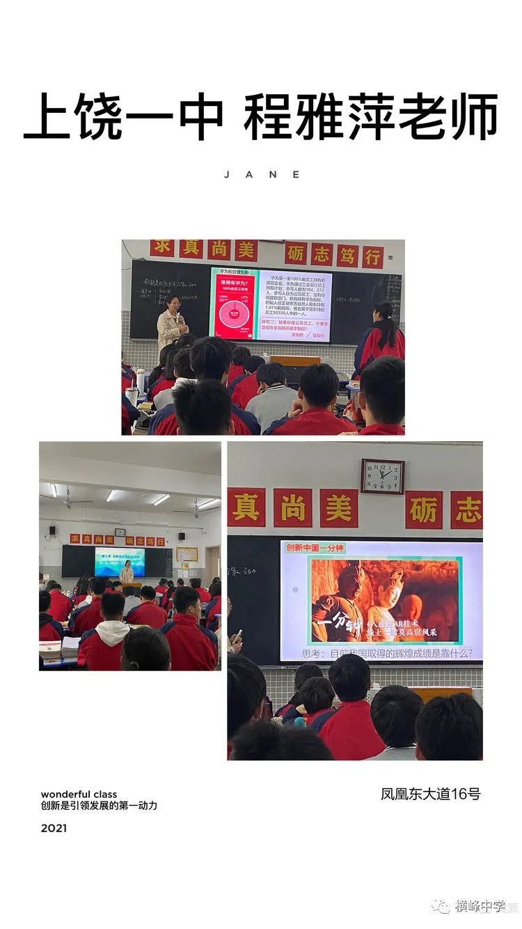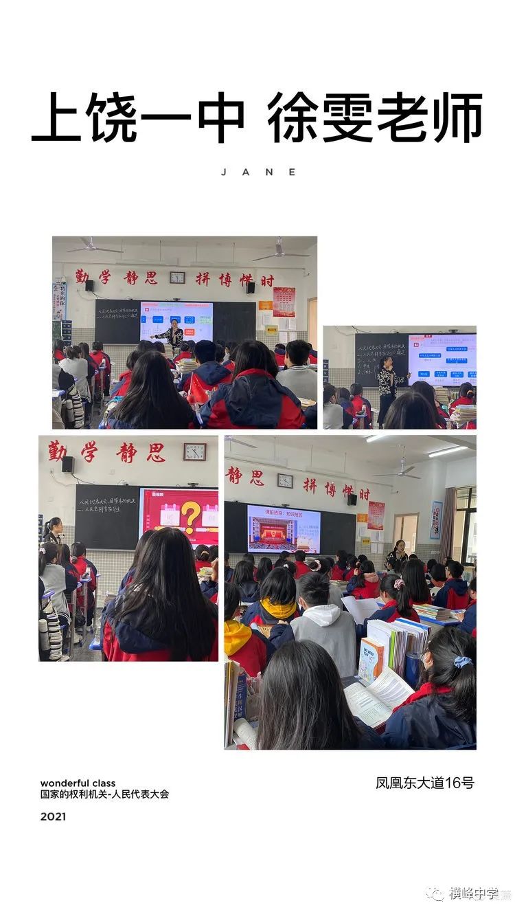 听完徐老师的课以之后,我们又马上到高二年级听了程老师的课。 程老师也是一位非常年轻的思政老师,前年开始教学工作。但是她的课却丝毫没有因为“年轻”而有任何逊色之处。条理清晰,娓娓道来,立足于课本,又有自己的独到见解。