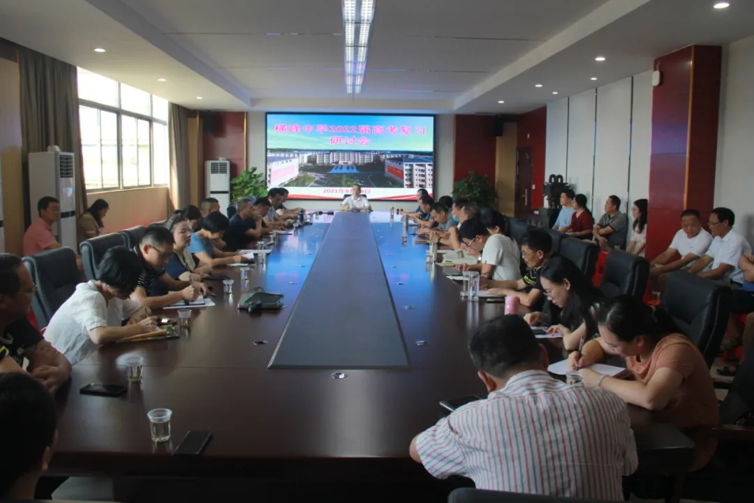 为认真总结2021届高三备考工作经验,进一步加强对2022届高考备考工作的过程管理,切实提高高三课堂教学效益,力争2022届高考再创佳绩,8月29日上午,我校高三年级召开2022届高三复习备考研讨会,横峰中学党委书记、校长苏万林,校级班子洪广罗、侯弋峰、王千明、王月婕、李章新,九大学科教研组长、高三年级备课组长、高三年级管理团队成员参加会议,校长助理、校研训处主任简伟伟主持本次活动。 会议伊始,校课程考试处主任兰星伏以《抚今追昔 路在脚下》为题对2021年高考成绩进行了细致分析。分析中,他着重对应历届文理科高考成绩进行对比,通过数据对比,指出2021届高考经验教训,提出一轮复习的扎实与否对于学生高考成绩的提高有着重要的影响,并表达了对2022届高三的祝福。