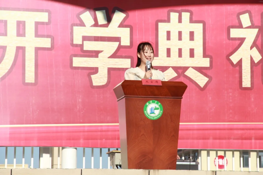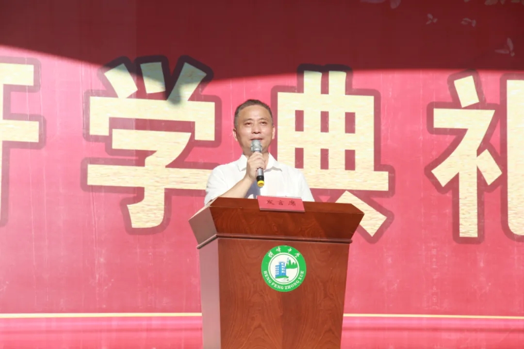 典礼在庄严的国歌声中拉开帷幕,苏万林校长在典礼上发表了热情洋溢的致辞。苏校长指出,回首过去的一年,学校在全体师生的共同努力下,横中爬坡过坎,成绩攀升,口碑向好,生源回流,我校在各类评优中高光呈现。新学期新气象,苏校长用五字真言寄语在场的每一位同学,即新”字当头、“小”字着眼、“精”字用力、“立”字增鲜、“安”字致远。他希望刚进入高中的同学们能把握新高考模式,能快速调整自己的状态,早日适应崭新的高中学习;他期望同学们从点滴做起,从好的学习习惯做起,不断超越,实现自己的理想;他激励高三学子用奋斗成就心中的梦想;他指出我们要做老黄牛,要心无旁骛聚焦主要工作;他嘱托同学们要树立家国情怀,勇敢面对责任与担当;他倡导同学们加强体育锻炼,增强安全意识。