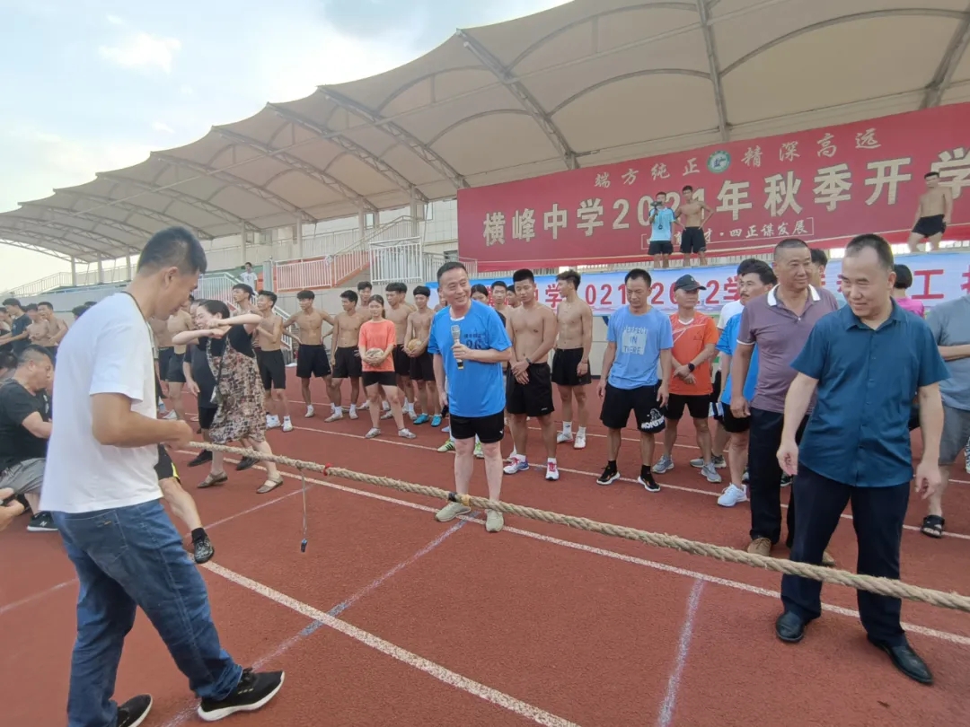 激情九月,活力四溢,片片白云点缀着朗朗晴空,夏天的火热还没有褪去,老师们的运动热情也一如既往。为丰富横峰中学教职工的文体生活、发扬团队精神、促进彼此之间的交流、增加凝聚力,横峰中学于2021年9月26日下午举办了一场激烈的教职工拔河比赛。 本次拔河比赛以年级为单位,每个单位派15名队员,男8名女7名,采用三局两胜赛制。比赛深受老师们的欢迎。雄赳赳气昂昂,操场上,每支队伍都带着勇夺第一的士气,喊出响亮的口号。