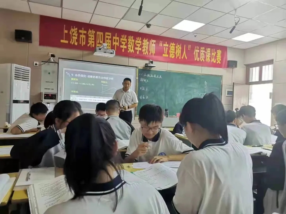 横峰中学陈文彬老师在9月27-28日举行的上饶市第四届高中数学“立德树人”优质课比赛中取得全市一等奖第一名的成绩,并将代表上饶市参加全省录课!元希婧、丁云进老师获指导老师一等奖! 特此报喜! 陈文彬老师在比赛现场