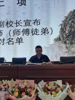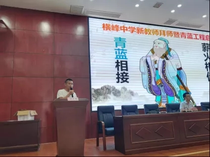 又是一年开学季,横峰中学也迎来了一批新鲜的力量—2021年新老师。善之本在教,教之本在师,为了更好帮助新老师及时融入到教学工作中,9月27日下午,横峰中学召开以“青蓝相接,薪火相传”为主题的新教师拜师仪式。横峰中学党委书记、校长苏万林,副校长侯弋峰,校长助理、研训处主任简伟伟及本学期结对的师徒共同参加了本次活动,研训处丁亮老师主持仪式。 会议伊始,简伟伟主任首先为大家解读了“一帮一”新老教师结对的活动方案,并寄语新老教师在新课程、新教材、新高考等背景下的新要求。 侯弋峰副校长梳理总结以往“一帮一”结对工作的经验,并宣读2021-2022学年度新老教师“一帮一”活动结对名单。 图片 与会校领导对参加此次活动的指导教师,颁发荣誉证书,勉励全体“师傅”们传经送宝、助力成长。 新老师们手捧鲜花,依次站在指导老师面前,行拜师礼。 优秀教师代表邓荣华老师分享自己的心路历程,也对新教师分享了自己宝贵的经验:一常怀感恩之心,二严格要求自己,三尽量博采众长。 新教师代表黄梦琦也为新教师们发声:诚心,细心,耐心是我们拜师学习的态度,勤学,勤问,勤听是我们拜师学习的方法,成长,成熟,成功是我们拜师学习的目的。