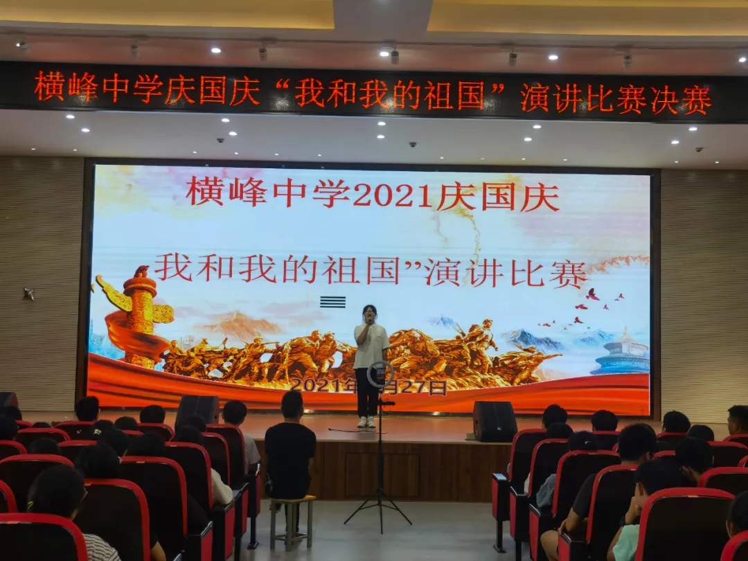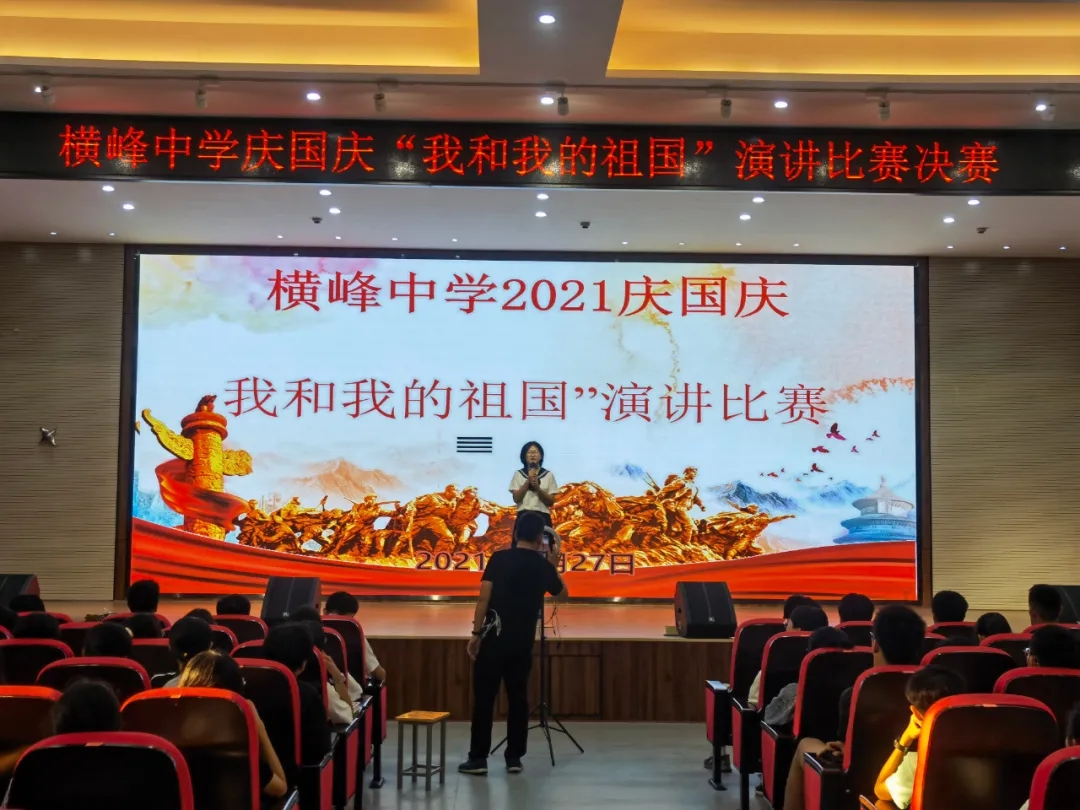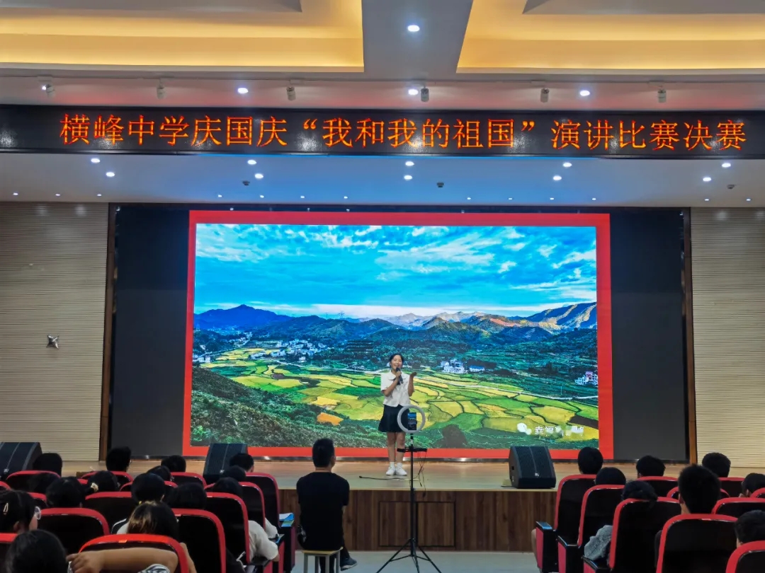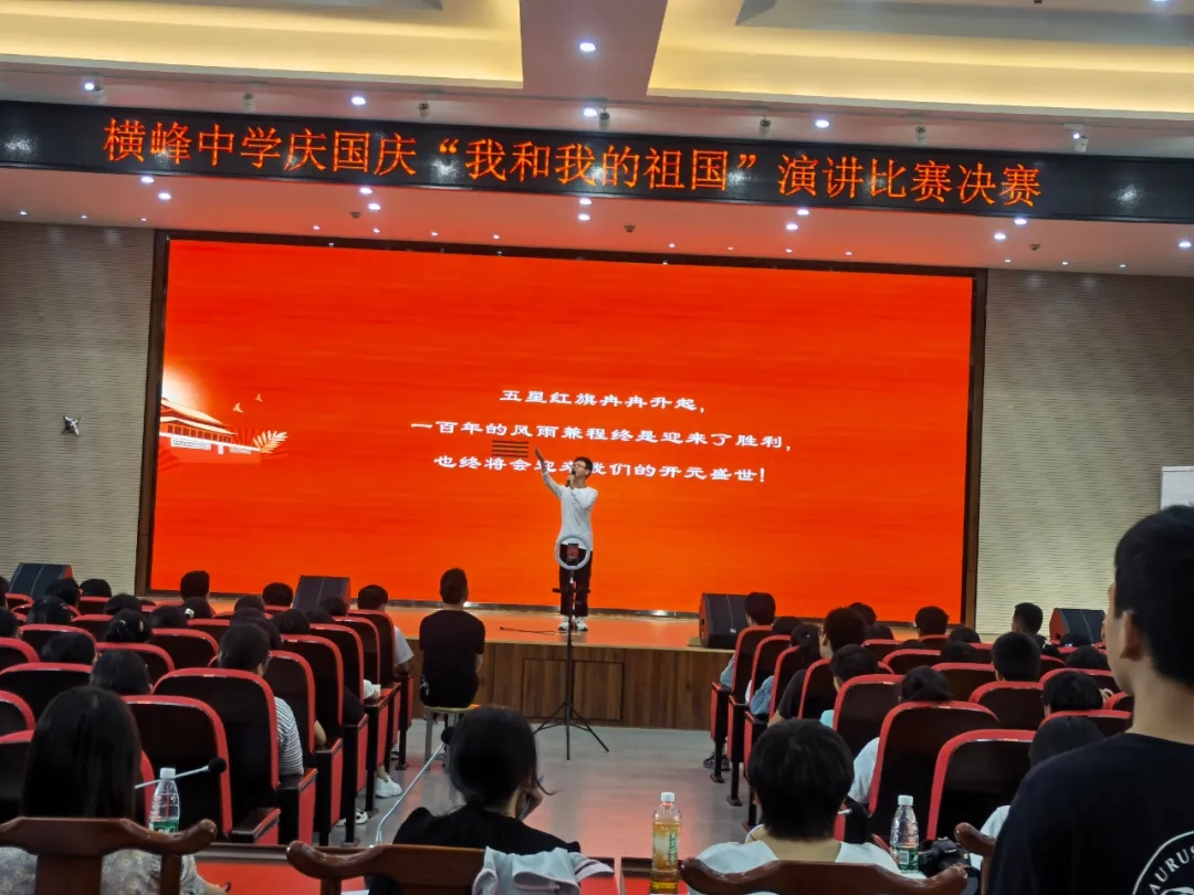 金秋十月,有着唱不完的颂歌,金秋十月,有着道不尽的祝贺。在中华人民共和国成立72周年之际,9月27日下午,横峰中学团委在校多功能报告厅举行了庆国庆“我和我的祖国”演讲比赛决赛。经过初赛比拼,有十位同学进入到今天的决赛,能容纳近400人的报告厅今天坐得满满当当,在全场师生的掌声中,现场高潮不断。