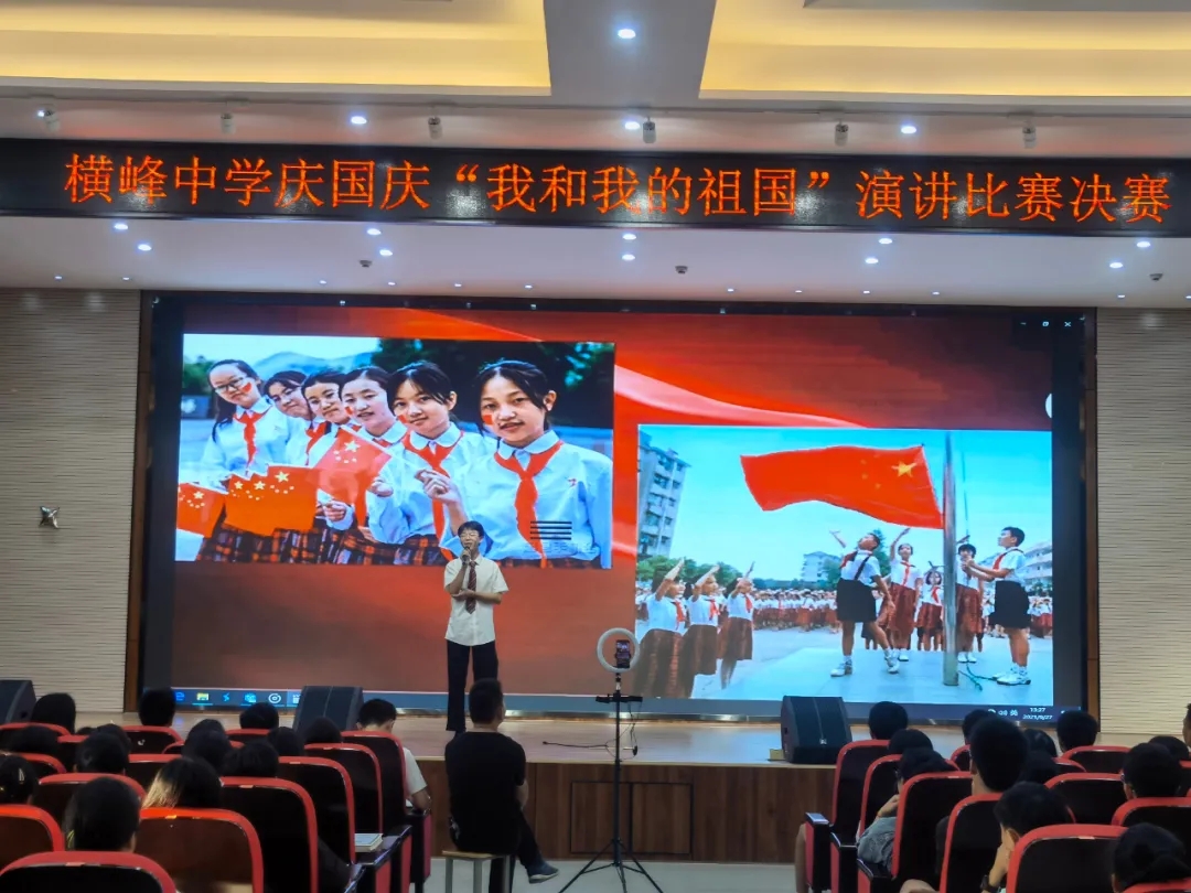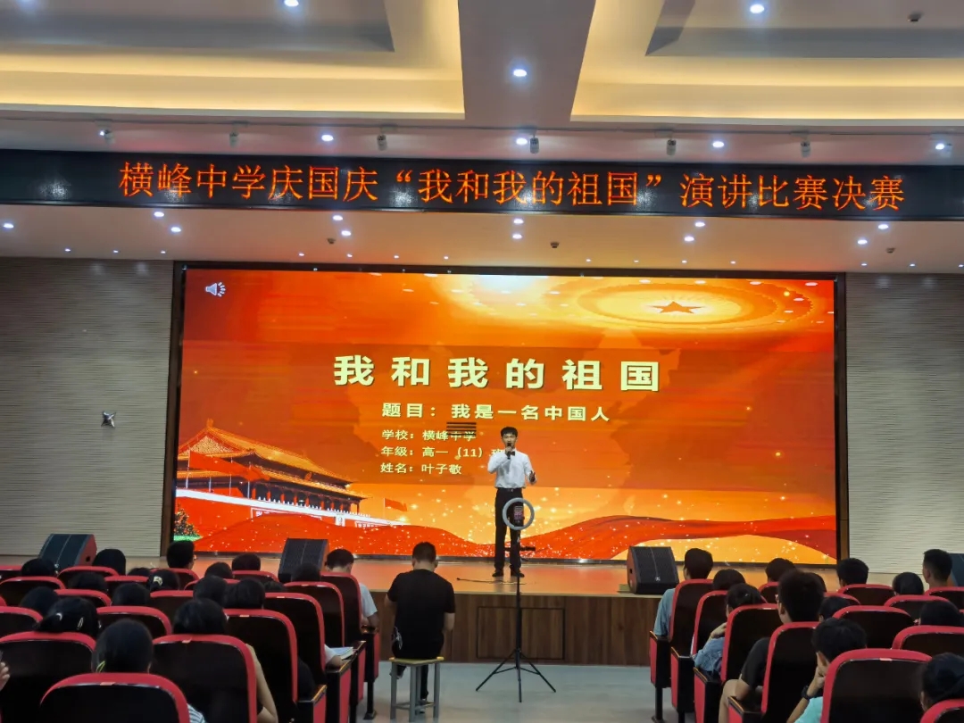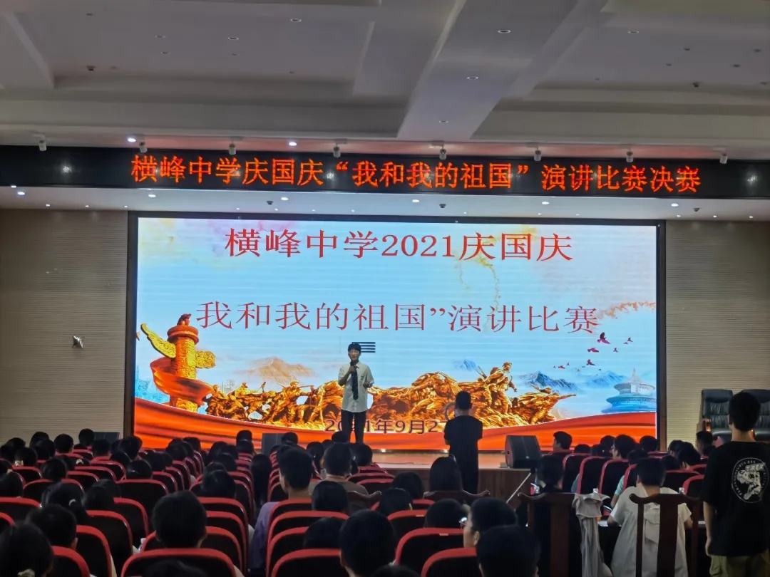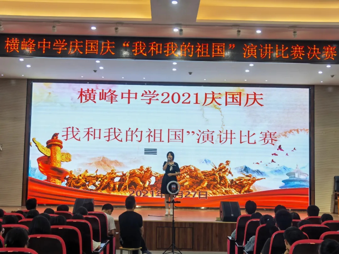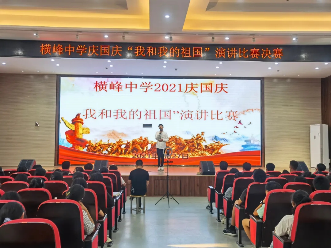 金秋十月,有着唱不完的颂歌,金秋十月,有着道不尽的祝贺。在中华人民共和国成立72周年之际,9月27日下午,横峰中学团委在校多功能报告厅举行了庆国庆“我和我的祖国”演讲比赛决赛。经过初赛比拼,有十位同学进入到今天的决赛,能容纳近400人的报告厅今天坐得满满当当,在全场师生的掌声中,现场高潮不断。