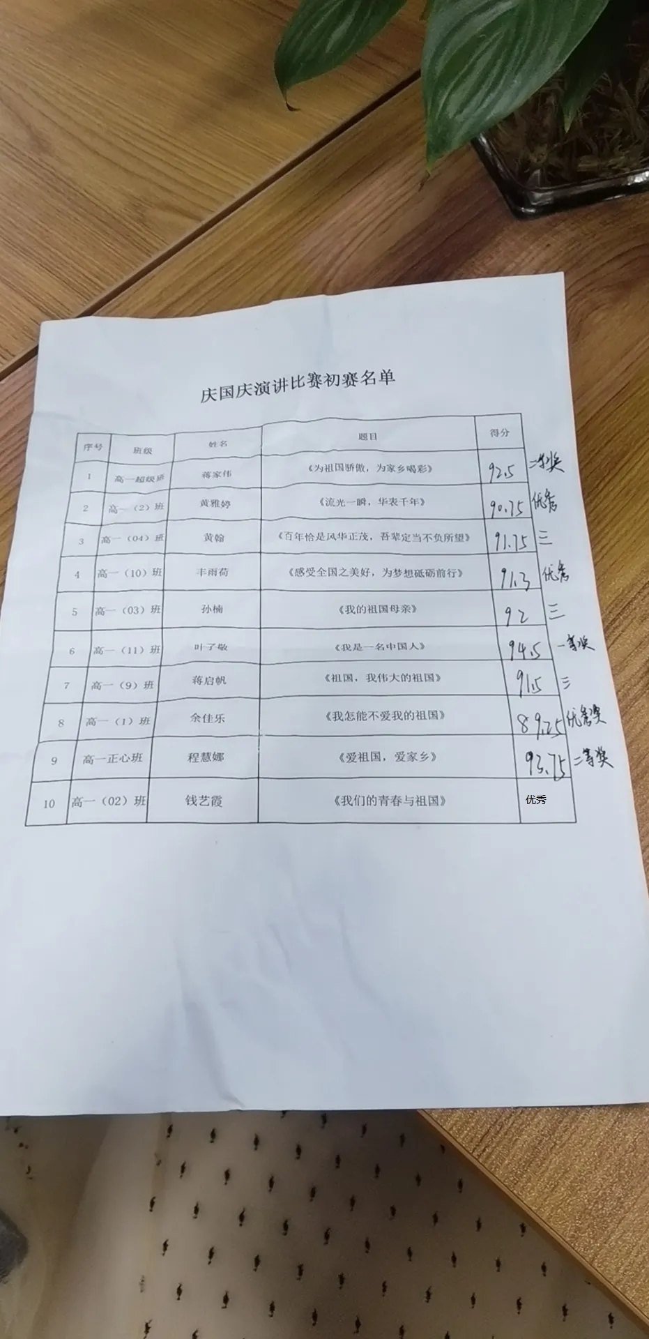 在比赛过程中,我们感受到了横中学子对祖国的深情,对祖国的热爱,为祖国感到骄傲,为身为中国人而感到自豪。生逢盛世,重任在身,吾辈青年当立鸿鹄之志,抱璞守玉,笃学敏行。 比赛结果如下: