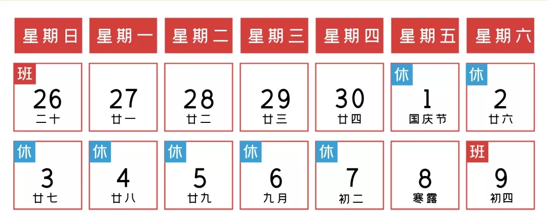 尊敬的家长朋友们: 您好! 喜迎国庆节,共筑中国梦。”十一”国庆假期即将来临,感谢各位家长对我校教育教学工作的关心、支持和帮助!各位班主任对放假安排进行了布置,为了您和您的家人过上一个欢乐、祥和的节假日,为了您的孩子能健康快乐的成长,期望你们密切关注孩子们的假期生活,配合学校对孩子做好教育和监管工作。为此,特向您提出以下几点建议和要求,请您认真阅读,切实做好孩子的教育和管理工作。 国庆放假时间为10月1日至7日,10月7日晚返校上晚自习。