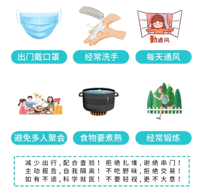 一、疫情防控 当前疫情防控形势严峻复杂,防控任务仍然艰巨繁重。为切实做好疫情防控工作,降低疫情输入传播风险,进一步做好校园防疫,保障全体师生员工生命安全和身体健康,现将有关事项通知如下: 1.主动加强防疫健康关注,科学合理调整假期时长和学习生活安排。为降低师生员工外出旅行感染风险,倡议师生就地过节,不得前往中、高风险地区,非必要不出省、不出市、学生确需离饶的必须向学校报备(向班主任报告); 2.公共场合需科学佩戴口罩(尤其是乘坐公共交通和在公共场所活动时); 3.勤洗手、常通风、不聚集,保持安全社交距离,使用公筷公勺,养成良好卫生习惯。