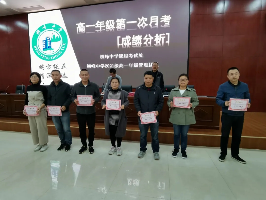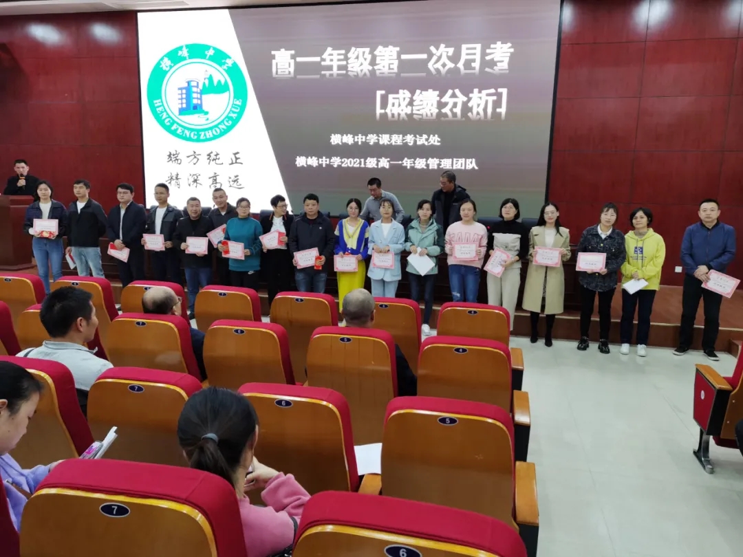 在颁奖环节,获得优胜班级的班主任,被评为月考优秀教师、获得优秀命题、审题教师荣誉的老师们上台领奖。