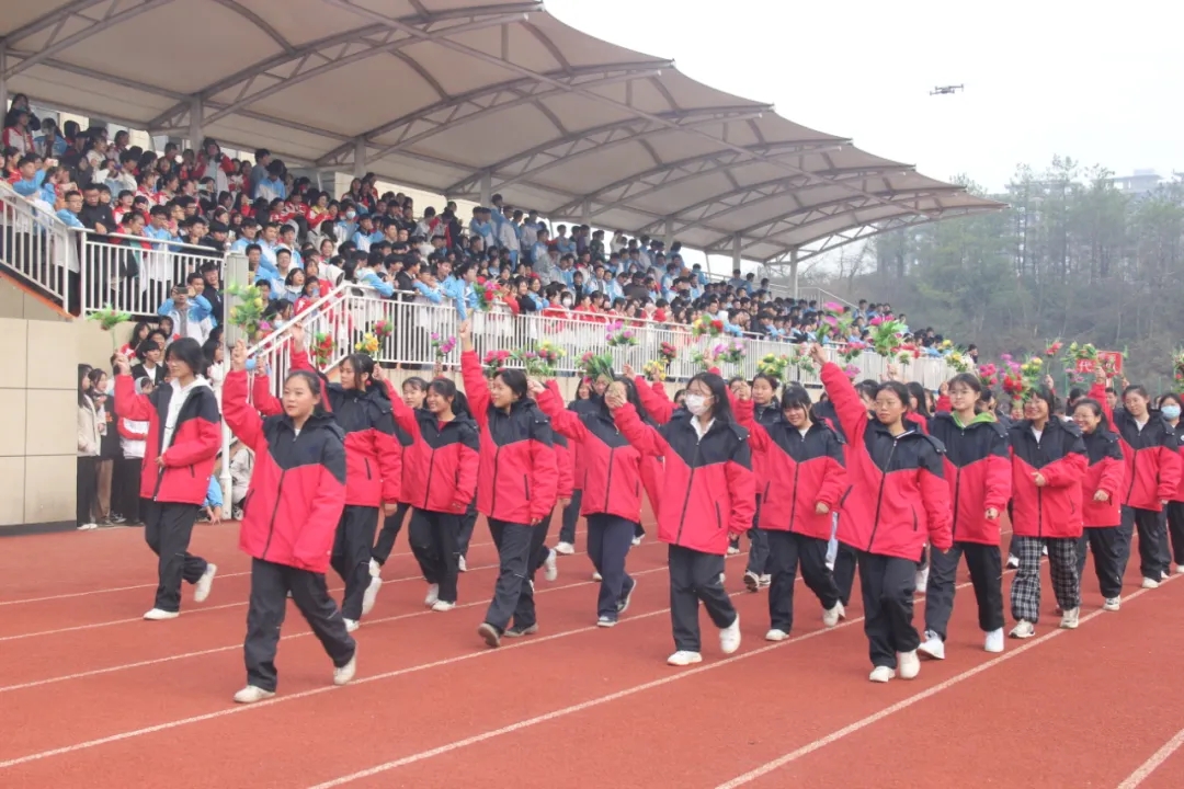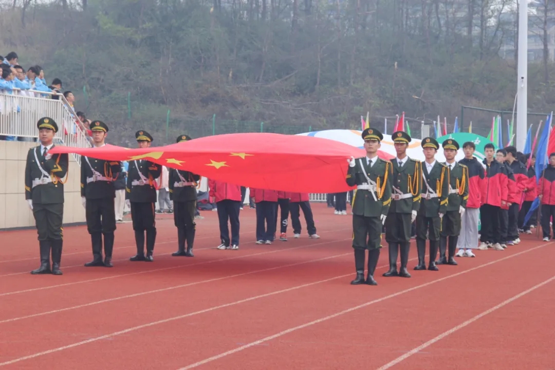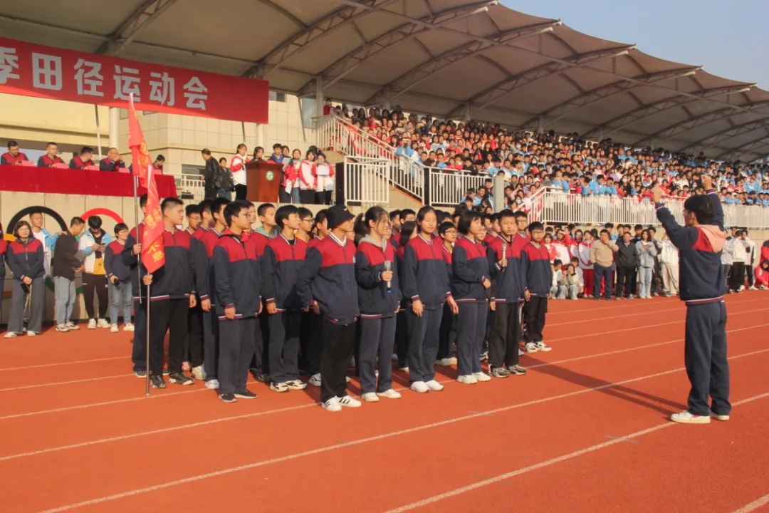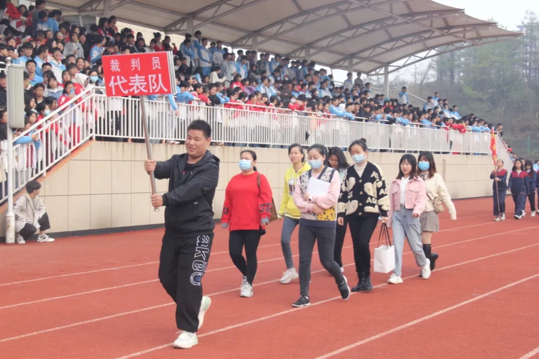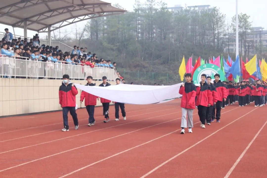 年轻的你们自信飞扬,脸上洋溢着自豪和勇敢。10月26日上午,横峰中学2021年秋季运动会开幕式在校田径场隆重举行。热血澎湃的心绪,燃烧在每位同学心中;喜悦祥和的氛围,洋溢在横峰中学的田径场上。横中师生齐聚一堂,心手相连,秉承强身健体、积极奋进的理念,我校党委副书记、副校长黄爱民携校级领导班子、全校师生共同见证一场精彩纷呈的体育盛会。 国旗护卫队、奥林匹克会旗队、校徽队、彩旗队、鲜花队、裁判员代表队、各班学生方队以饱满的热情步入操场,他们带着自信的微笑,迈着铿锵的步伐,英姿飒爽,意气风发,依次经过主席台接受检阅。 开幕式各班表演中,同学们向建党百年致敬,向抗疫天使致敬,多数班级还带来了才艺展示,尽展横中学生的青春风采。在场的师生们不仅接受了一场“美”的洗礼,也感受了“力”的澎湃。 鲜艳的五星红旗在庄严的国歌中冉冉升起,庄严的升国旗仪式后,黄爱民副校长为本次运动会致开幕辞。他指出,少年对于国家之重要性,也正是100年前一代青少年之觉醒,才有了今日国家之强盛。作为现代的青少年学生,不仅要具备智慧的头脑,更要具备拼搏的精神和强健的体魄!只有这样,同学们才能以更加斗志昂扬的姿态融入社会主义事业的新征程,开启属于我们每个人的新时代!只有这样,我们的民族我们的国家才能早日实现中华民族伟大复兴的梦想!