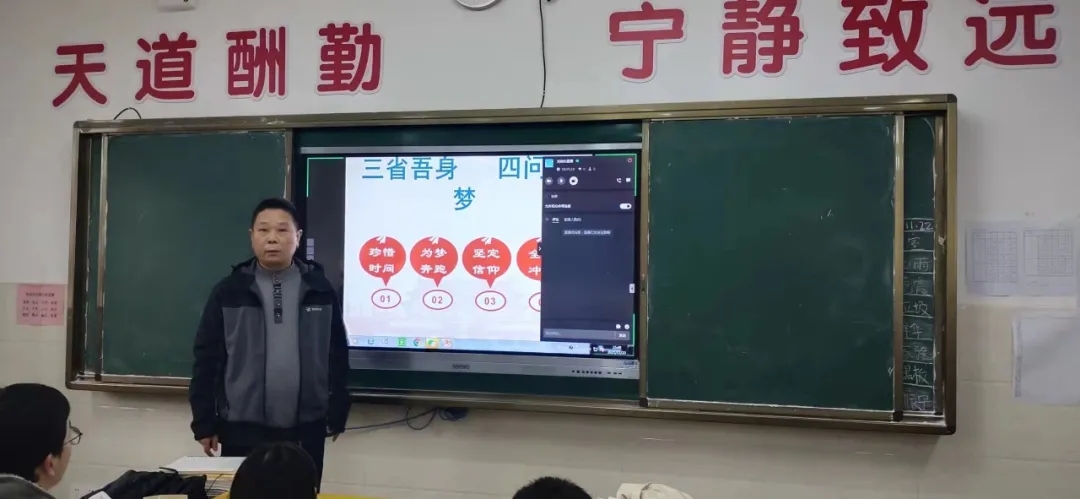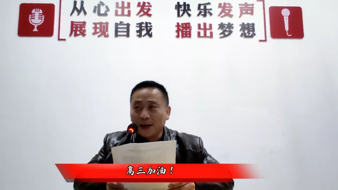 “追梦的路上没有理由不前进,没有借口不打拼,努力到无能为力,拼搏到感动自己,在阳光下灿烂,在风雨中坚强,最棒的三个字是——靠自己!生活给我们压力,我们当然要还生活以奇迹和精彩!”主题班会的最开始,横峰中学苏万林校长通过广播为全体高三学子加油鼓劲。
