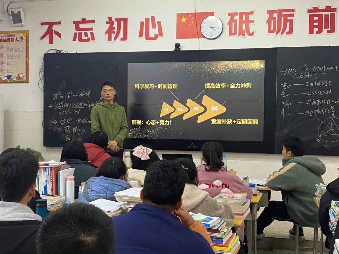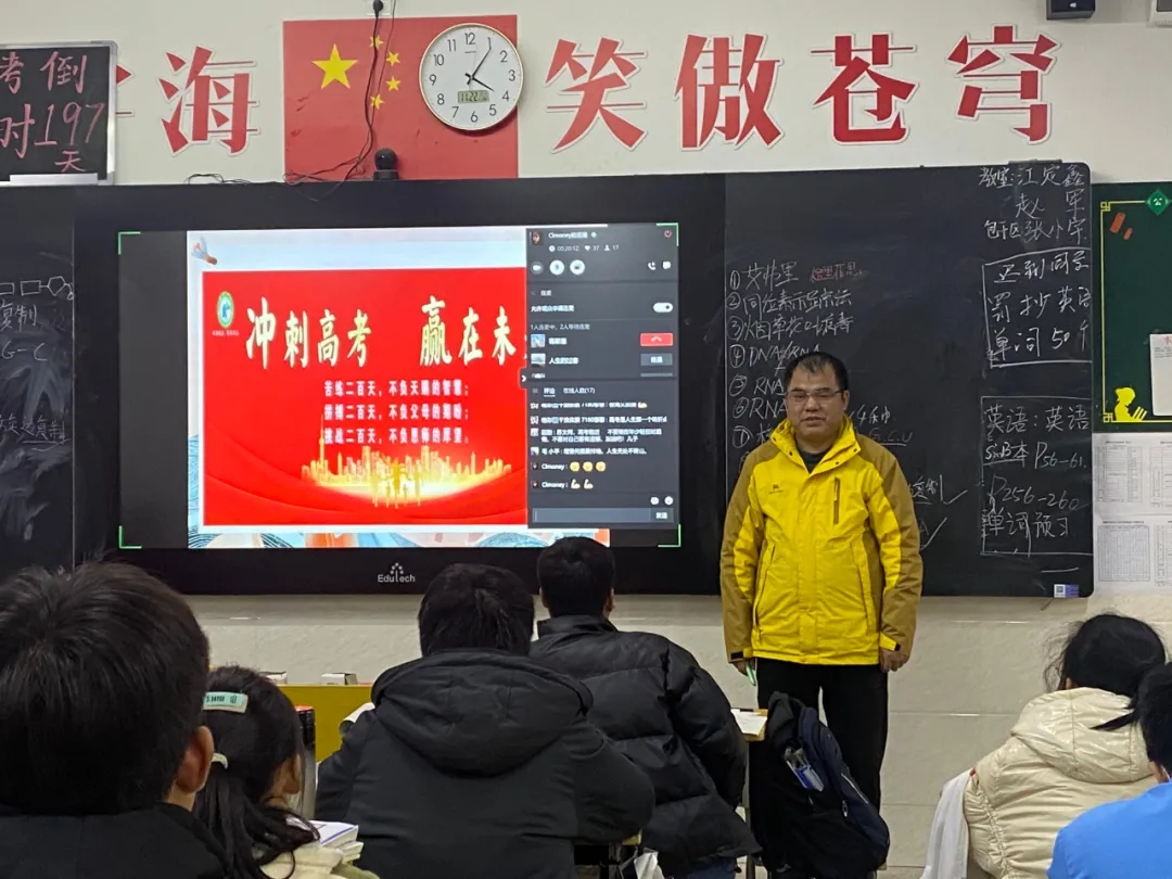 看着你们坚定的目光,我们深感欣慰:你们终于长大了!少年自有少年狂,藐昆仑,笑吕梁,磨剑十二年,今将试锋芒!“俱怀逸兴壮思飞,欲上青天览明月”,鲜红的终点线在前方真真切切,你们年轻的生命是否感受到了,成功距离你们竟是如此之近!在未来的两百天,期待你们受日月之光华,乘春风之快意,御天地之灵气,最终成为强者脱颖而出!