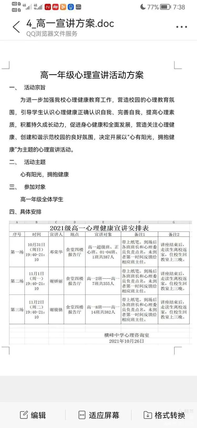 每年高一新生入学,都面临一个适应新环境的问题:环境适应、学习适应、人际适应,高一阶段更是一个学生心理脆弱、心理问题高发的时期。对此,我校校领导高度重视,在高一年级的积极配合下,我校心理咨询室于11月28至30日,开展了主题为“心有阳光 拥抱健康”的心理健康讲座。全体高一学生聆听了讲座。