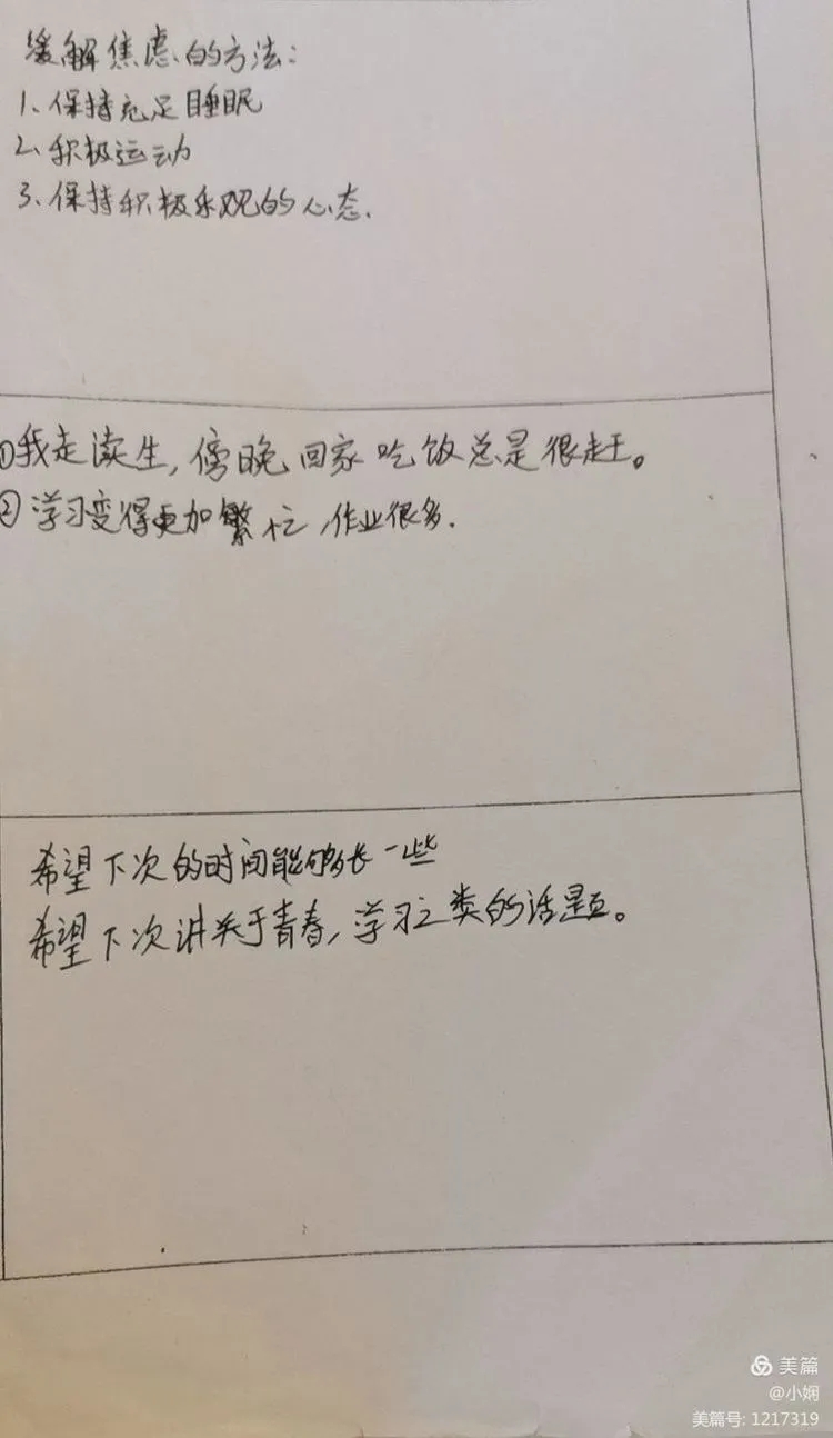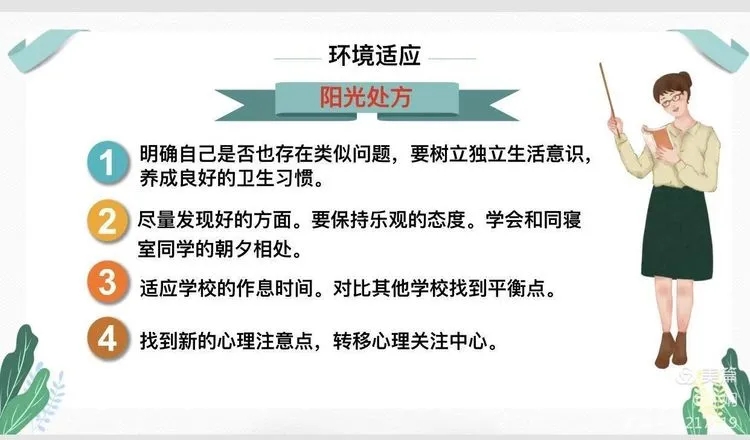 随后,邓老师向学生提问“你觉得高中生活遇到了哪些困难,你是如何克服的?”。 同学们积极主动地回答了邓老师的问题,对学校教学环境和学校老师比较满意,大部分同学相处也比较愉快,也有个别同学反映学习不太适应,同学不熟悉,有点孤单。还有同学反映家里和学校距离太远,上下学不方便。 积极配合的同学还获得了邓老师准备的小礼物! 针对其中的环境适应、学习适应和人际适应,邓老师一一给予了指导。
