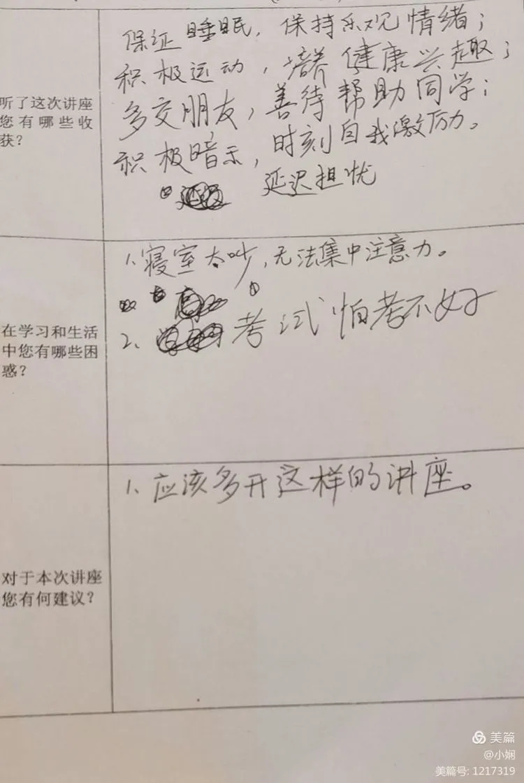 讲座伊始,邓老师通过和同学们的一个互动小游戏迅速建立了默契。 为了了解学生入学以来的情绪情感体验及心理状况,邓老师精心设计了心理测试问卷,学生认真作答。