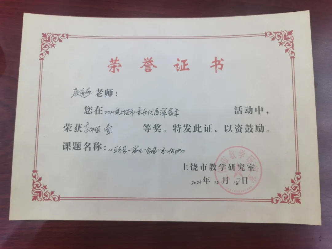 | 横峰中学耿海燕老师荣获上饶市高中音乐优质课展示比赛一等奖!杜文萱老师荣获市二等奖! | |||