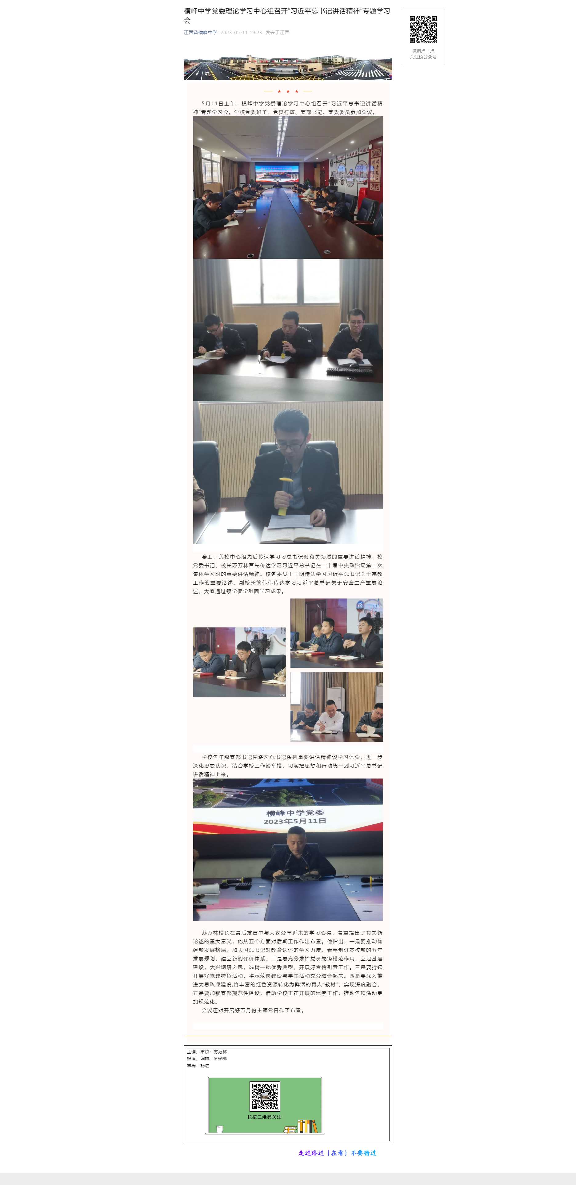 | 横峰中学党委理论学习中心组召开“习近平总书记讲话精神”专题学习会 | |||