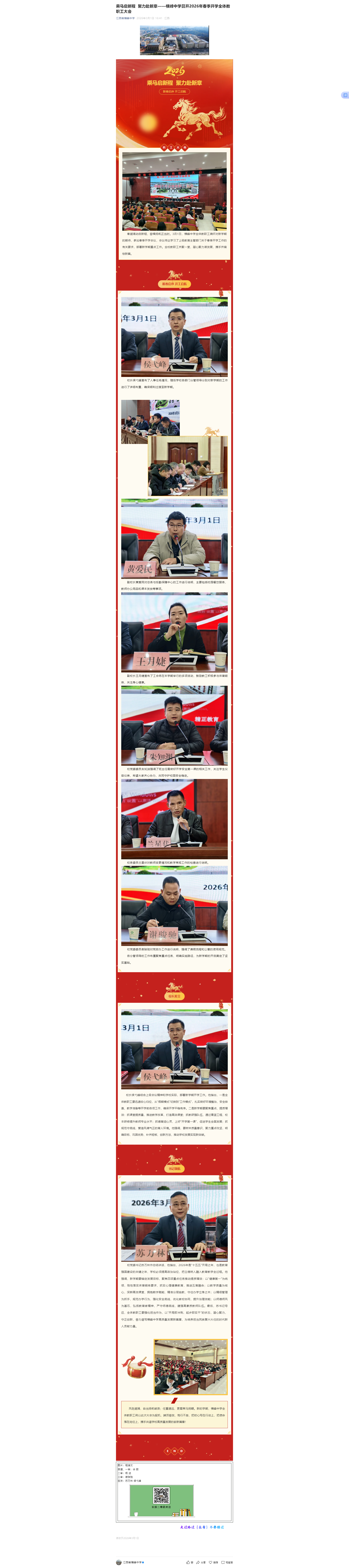 | 乘马启新程 聚力赴新章——横峰中学召开2026年春季开学全体教职工大会 | |||