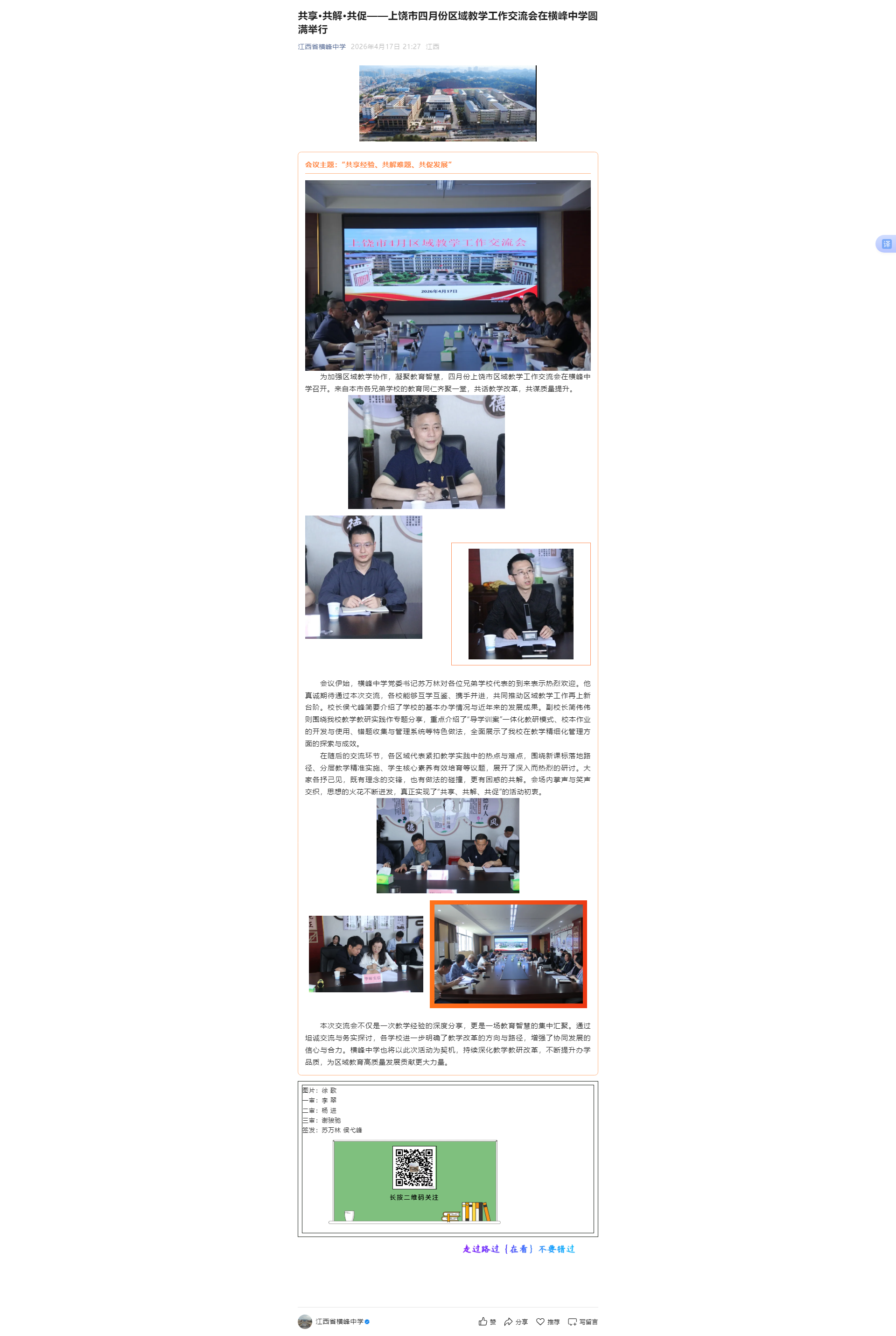 | 共享·共解·共促——上饶市四月份区域教学工作交流会在横峰中学圆满举行 | |||