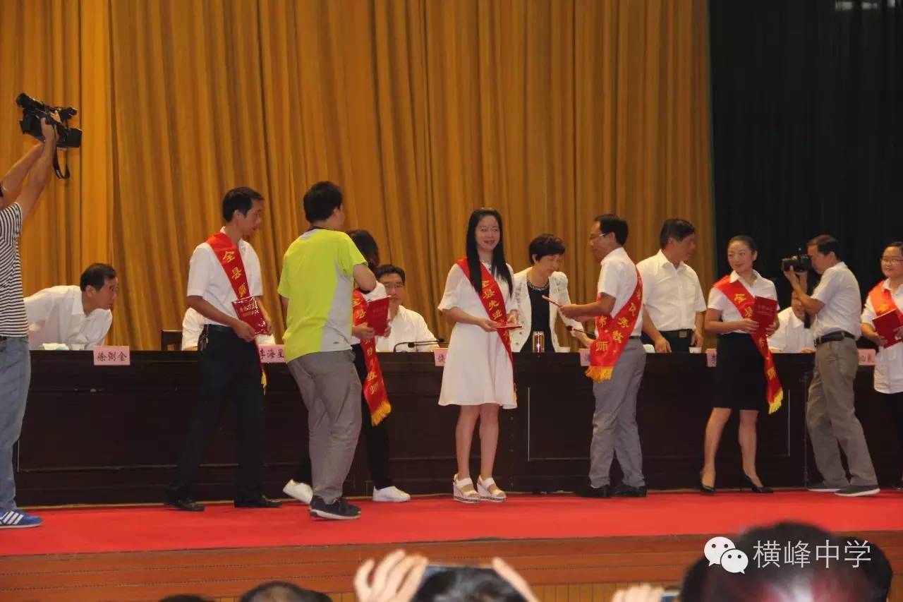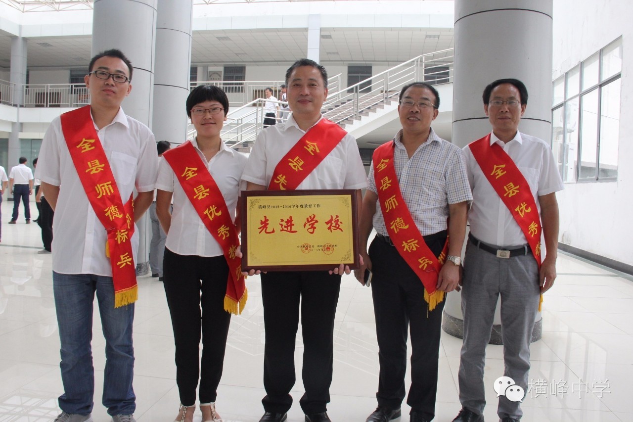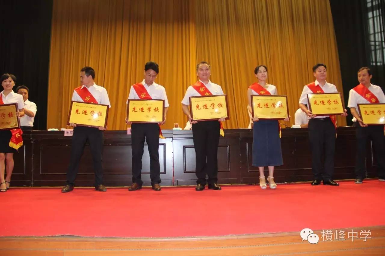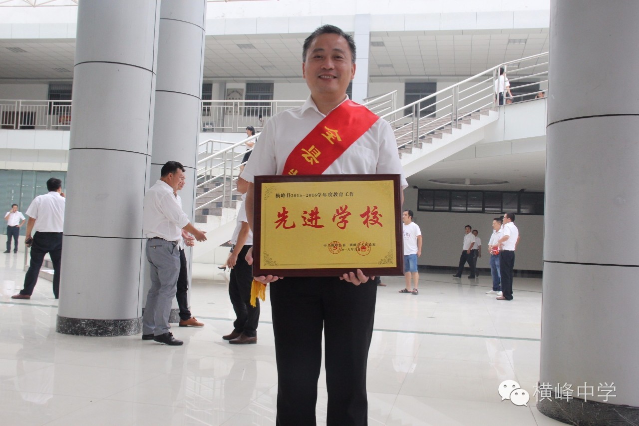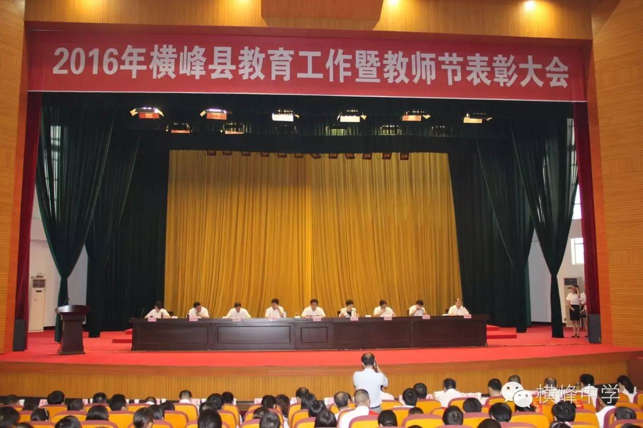 在全国第32个教师节来临之际,横峰县委书记饶清华协同县四套班子成员在文化艺术中心召开2016年横峰县教育工作暨教师节表彰大会,县委副书记、县长潘琍主持会议.表彰大会上,县委常委、宣传部长戈竹武宣读县委、县政府《关于对县教育体育局、横峰中学给予嘉奖的通报》,对横峰中学在2016年高考中取得的进步予以通报嘉奖,戈部长接着宣读县委、县政府《关于表彰2015—2016学年度教育工作先进集体、先进个人的决定》,横峰中学荣获省级“平安学校”称号!荣获横峰县2015-2016学年教育工作“先进学校”称号!荣获全县普通中小学综合评估第二名!我校毛宏娟老师荣获上饶市“优秀教师”称号!邢世成、郑兴发老师荣获“师德标兵”称号!刘定佩、李冬倪、杨进三位教师荣获“优秀教师”称号!周军、杨学孟老师荣获“先进教育工作者”称号!县领导为获得荣誉的单位和个人颁奖,横峰中学党总支书记、校长苏万林从饶清华书记手中接过“先进学校”奖牌,获奖教师身披红肩带从县委四套班子手中接过荣誉证书。我校高三特优班学生刘俊男作为受资助的学生代表发言。副县长王芳作教育工作报告、县委书记饶清华作重要讲话,再次提出全县上下要为高中教育发展出力,饶书记在讲话中当即作出批示,指定县领导拨付十万元给横峰中学作为今年的高考特别奖,以表彰学校今年取得的进步。