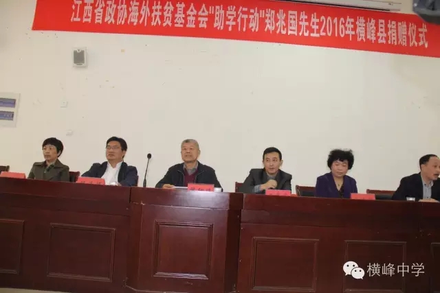 | 春风化雨,润物有声---江西省政协海外扶贫基金会“助学行动”郑兆国先生2016年横峰县捐赠仪式在我校艺术楼举行 | |||