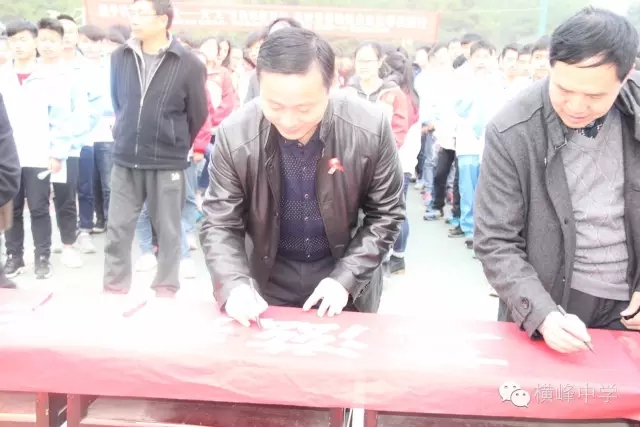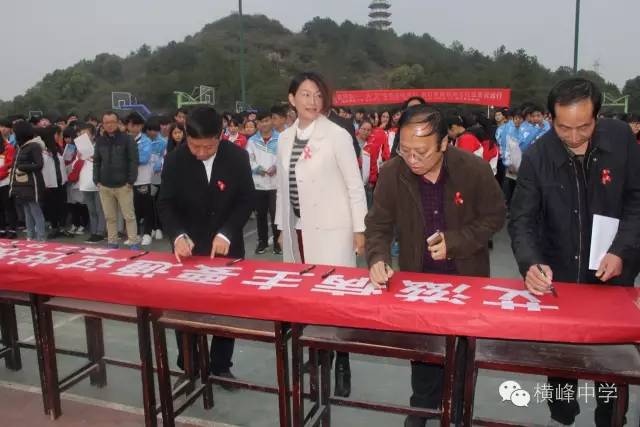 王芳副县长、县防艾委、皮防所、教体局的领导同志分别在横幅上签名,苏万林校长参加仪式并签名。