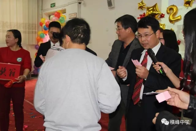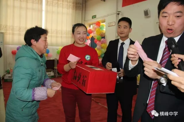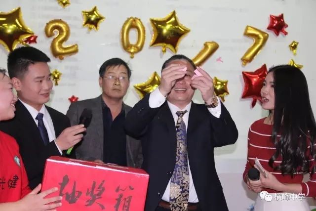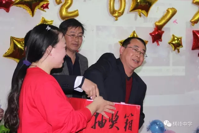横峰中学党支部书记李章新、校长助理王千明在游戏结束后进行了第一轮抽奖,教工屏住呼吸,当抽到自己的名字时,喜不自胜~