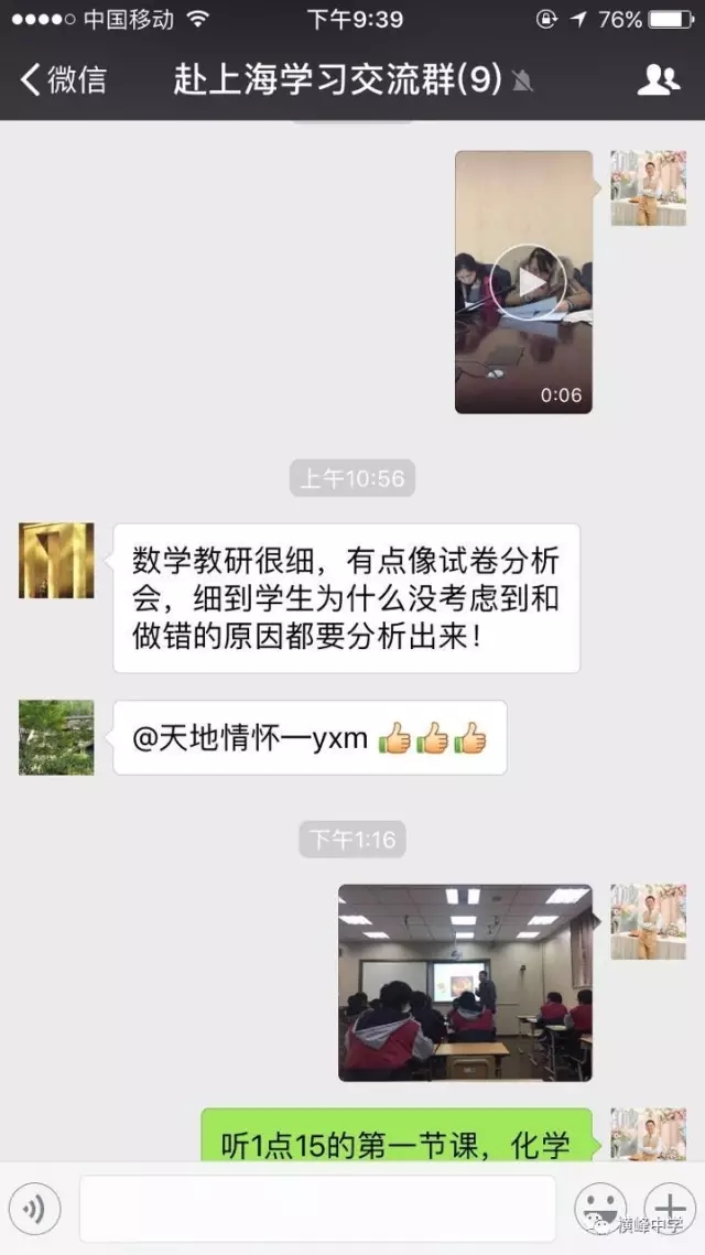 随后,众人观摩、学习数学组的教研活动,了解到学校以备课组为单位开展每周一次的教研活动,及时反馈学生学习情况,先研后教,教后再研,有教必研的特点和经验,澄衷高级中学的教研形式令众人大受启发,大家纷纷利用信息平台,及时将所见所闻与学校老师交流分享。下午,一行人听取了一节化学公开课,并参加了随后的化学教研活动,听取阮副校长对学校教研、特色高中发展项目开展实施等情况的介绍。 充实的第一天很快过去,一张张图片、一个个故事,一件件历史实物呈现出澄衷高级中学科学而细致入微的管理理念,众人切身感受到澄衷高级中学是一所历史底蕴丰厚,教师乐教、学生乐学的温馨学校,大家纷纷表示定会吸收、借鉴上海先进的教学理念,运用到本校实际的教学中,为发展壮大横峰中学,为横峰学子提供优质的高中教育而努力! |