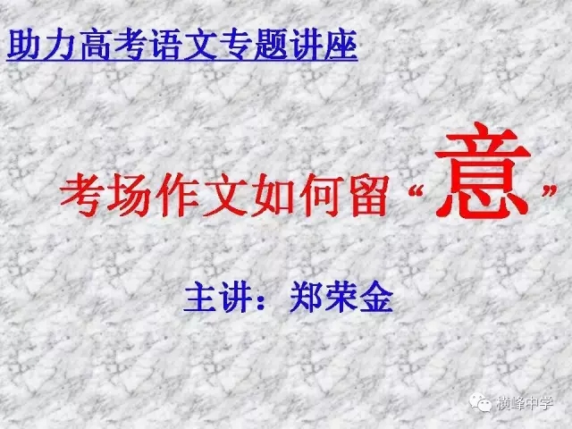 高考日益临近,为帮助高三学子在高考冲刺阶段做好相关知识总结、掌握应考技能、提高应试水平、更好地备战高考,我校教研部门继续发扬传统,邀请学校骨干教师和一线名师开展高考复习备考系列专题讲座。4月13日,学校语文教研组长郑 荣金为我校部分高三师生作高考复习备考专题讲座,“破解”高考密码,正式