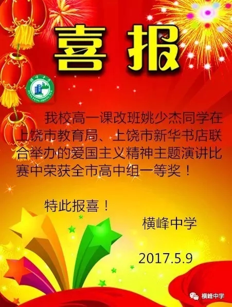 | 横中学子创佳绩,全市演讲勇夺冠--我校学子勇夺全市演讲比赛一等奖! | |||