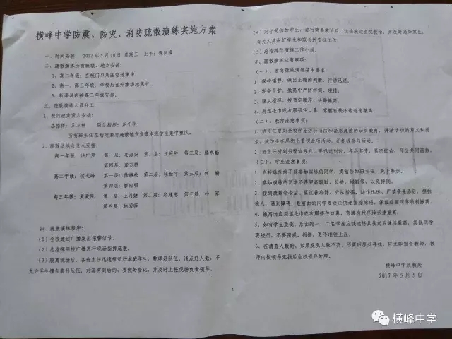 为进一步普及防震防灾安全知识,增强师生安全防护和逃生意识,掌握地震逃生、自救、互救的基本技能,“5.12防灾减灾日”来临之际,5月10日上午课间操时间,横峰中学开展2017年上半年“防震防灾”应急疏散演练。全校近3000名师生参演。 ![]() ![]() 这次演练精心策划,周密安排,制定了总体方案和疏散演练示意图。各班班主任也在周一的班会课上为同学们做了详细的疏散知识讲解。
